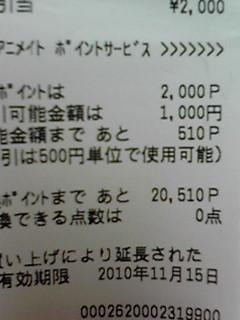 とりあえずこいつをみてくれ(先月)16日にカレンダーを買いにアニメイトへいったときのレシートなんだそしてこれをみてくれ、3日前のだ。もとのポイントが510でつぎのになると4620で、当然+500円引きになっているつまり510と10000引く4620で5380円つかったことになってるんだ。景品交換ポイントはあと20510ポイントの状態から景品交換0ポイントと、あと残りポイントの状態になっているつまり、50000さておき、50000引く14620で35380円使ったことになっているちなみに、35380円を使った覚えはあるし、意味(のワの)です。しかし、ふたつだけわかることがあります。1500円引き、そして散財です。、、、、、、、、、、、、、これは、一足遅いクリスマスプレゼントなんですね?アニメイトさん、ありがとうございますがんばって後14620ポイントを稼がせていただきますなんで俺には謎のおまけポイントが付いてないんだああああああああああ!!詳しくは⇒http://plaza.rakuten.co.jp/OTAKUFORCE/diary/200812060000/
