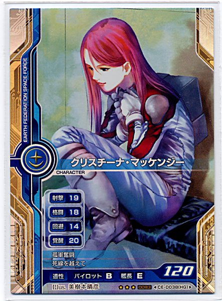 鬱陶しい願書を眺めていたことで底辺にまで下がったテンションを元に戻すためにFIRE BOMBERの曲を聴いていたら、逆にテンションが上がり過ぎて、何故か右肩を痛めたサタデーナイト。そんなわけの分からん状況の所為か、またしてもL3を保っていたGCB症候群がジワジワ ト ウズキダシテキタ ゾ 。・・・早い話がお決まりの逃避癖なんだがね(;´∀`)とはいえ、この新規絵(美樹本作)のクリスを見て余計な衝動に駆られるなと言う方が無理な話でして。財布の中身がシベリアも真っ青なほどの極寒状態が続いているおかげで今のところ再プレイには踏み切っていないものの、内心、いつぞやの廃人生活に復帰したくて・・・・・・・・・・ウズウズ。・・・・・・いや、まて、これはバンナムの罠だ。今回のVer.UP新規カード追加の誘惑に釣られて再度プレイしようものなら、きっと、チャリーンチャリーンヒュンヒュンペリッげげっ、レアカ!!ってな、廃人向けカードダスの陰謀にまた嵌まるに違いない。自重しなくては。~~~~~~~~~~~~~~~ガンダム繋がりで以前見つけたバトンでも。【GUNDAMバトン】 ・このバトンはガンダムシリーズ全般に関するバトンです。 ・一問一答ではなく、複数回答も全然OK! ↓ではハリキッてどうぞ↓ 1,あなたは新参?古参? 古参。平成ガンダムしか知らんヒョッコ共にガンダム云々は語らせねぇぜや。勿論、1stガンダム世代には劣りますが。っても、ガンダム世代問はず、「今が青春(笑)」とか言ってる一部の過激なオタクのオジサマ方もどうかと思う。2,好きなシリーズは? 主に宇宙世紀。種、00はあくまで類似作品として理解。 3,ガンダムで好きな機体は? V,V2G-04,05NT-1ALEXGP-01,01Fb富野御大はV2嫌いだそうだが、俺は好きだああああああ!!4,ガンダム以外で好きな機体は? ジム系アッザムアッガイアッシマーもはやアッガイとアッシマーは鉄板でしょ。5,好きなキャラクターは? 主にVガンの面子。ウッソとシュラク隊のお姉様方の絡みはショタの先駆けだと思う。ZZのプル、プルツーで双子姉妹&ロリコンジャンルの開拓もしていた御大・・・・・・。パイオニアにもほどがあるwww6,妻(夫)にするなら誰がいい? 永遠の17歳(+1万日)のアイナ様。――と、言いたいところだが、シロー&変態兄さんとサハリン家の愉快な下僕達に爆殺されたくないのでクリス。嘘だと言わせないよ、バーニィ。7,家族にいるとしたら誰がいい? ウッソ、カテジナ、ハマーン、キャスバル兄さん、それと苦労人役にヘンケン。武力介入不可の家庭内紛争勃発必須。8,知り合いにいるとしたら誰がいい? シャア。真正のロリコン仮面を是非知り合いに。9,好きなセリフは? 『アッシマーがっ!!』『流石、ゴッグ。なんともないぜ』『おかしいですよ!!カテジナさん!!』『このターンX凄いよぉ!!流石ターンAのお兄さんだぁ!!』以下、カテ公(CV.ケロロ軍曹)名言録。『じゃあ、あたしを殺してごらん、坊や』『トチ狂ってお友達にでもなりに来たのかい!?アハッ!!』『この戦いはねぇ、 二人の男があたしを賭けて戦っているんだ。 だから邪魔はさせないんだよ!』『戦え・・・。クロノクル、ウッソ。 あたしの手の中で戦いなさい。 勝った者はあたしが全身全霊をかけて愛してあげるよ。 アハ、アハハハハハハ、アハハハハハハハ!!』『戦いのけりはついたわ。君が勝ったのよ。 でもあたしはクロノクルを愛してしまったから、 君と抱き合うことは出来ない。だから殺してちょうだい・・・!』こんなストレートなヤンデレ、見たことない☆元祖ヤンデレ、シスコン、ショタの三つ巴劇場はある意味、見所。10,好きな作戦は? ジャブロー攻略作戦。アッガイで連邦軍本拠地に仕掛けるとか、ロマン過ぎる。そんなアッガイを容赦無くぶった斬るガンダム・・・・・・恐ろしい子!!11,好きな戦闘スタイルは? 掃討戦、迎撃戦。そ れ と ゲ リ ラ 。 12,好きな部隊(軍)は? 04小隊シュラク隊サイクロプス隊ジャック・ザ・ハロウィン隊リガミリティアデラーズ・フリート13,好きな主題歌は?ETERNAL WINDターンAターン水の星に愛をこめてSTAND UP TO THE VICTORY 4曲ともガチ。14,ガンダム系ゲームは何をやりますか? GCB戦場の絆VSシリーズ15,「戦場の絆」のデータを教えて!(黙秘可 階級忘れた。撃墜スコアは150前後だった希ガス。 16,最近のシリーズは「○女子向け」とも言われていますが? 何を今更。“向け”じゃなくて“専用”の間違いだろう?バンダイと製作サイド公認のことじゃあないか。17,過去に作ったガンプラで最高の出来だった機体は? SD百式。HG、MGはまともに作れない工作音痴。実習記録、だいっ嫌い。18,そもそもガンダムって何? 金儲けの代名詞。それ以上でもそれ以下でもない。19,あなたの精神コマンドを教えてください。 脱力。20,自分の人生を機体に例えるなら・・・・? ボール。オッゴ。 常時死亡フラグONの棺桶持参人生。21,秋からガンダム-OOの二期が始まりますが? ミスター・ブシドウwwwコーラサワー化けて出ろやwwwww22,「ボウヤ」ですか? いいえ。むしろブライト風に言うなら