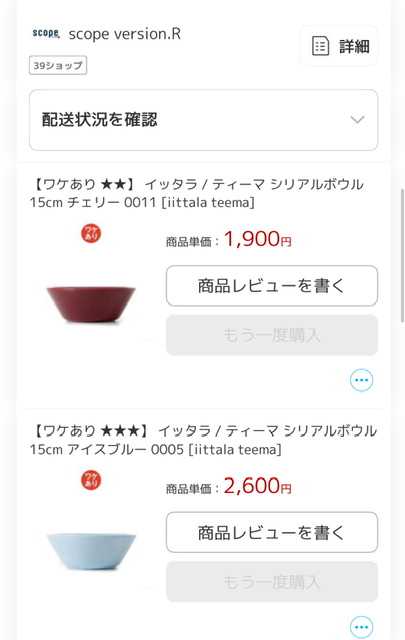 こんばんは。マラソン始まりましたね。今回は少し走ろうと思います。1店舗目は、scope version.Rさんスタダ突撃しました。まさかのクーポン使いそびれて1回キャンセル💦それでも何とか間に合いました。まだ買えます!【ワケあり ★★★】 イッタラ / ティーマ シリアルボウル15cm チェリー 0009 [iittala teema] 【ワケあり ★★★】 イッタラ / ティーマ プレート17cm チェリー 0008 [iittala teema]【ワケあり ★★★★】 イッタラ / ティーマ マグ 0.3L アイスブルー 0004 [iittala teema]【店舗クーポン発行中】iittala イッタラ Teema ティーマ ボウル 15cm 秋冬限定カラー アイスブルー チェリー 食器 お皿楽ファでも買える!iittala [公式] イッタラ ティーマ ボウル アイスブルー 15cm イッタラ 食器・調理器具・キッチン用品 食器・皿 ブルー明日のLINEクーポンの条件よければ欲しい…【12月11日9:59まで期間限定価格】アラビア / ルノ ボウル 13cm フロストベリー [ Arabia Runo ]【12月11日9:59まで期間限定価格】アラビア / ルノ プレート16.5cm フロストベリー [ Arabia Runo ]【12月11日9:59まで期間限定価格】アラビア / ルノ プレート11.5cm フロストベリー [ Arabia Runo ]【12月11日9:59まで期間限定価格】アラビア / ルノ ティーカップ フロストベリー [Arabia Runo ]