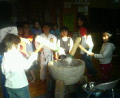 子供達を迎えに児童館に行ったら、子供達が餅つき大会をしていました。