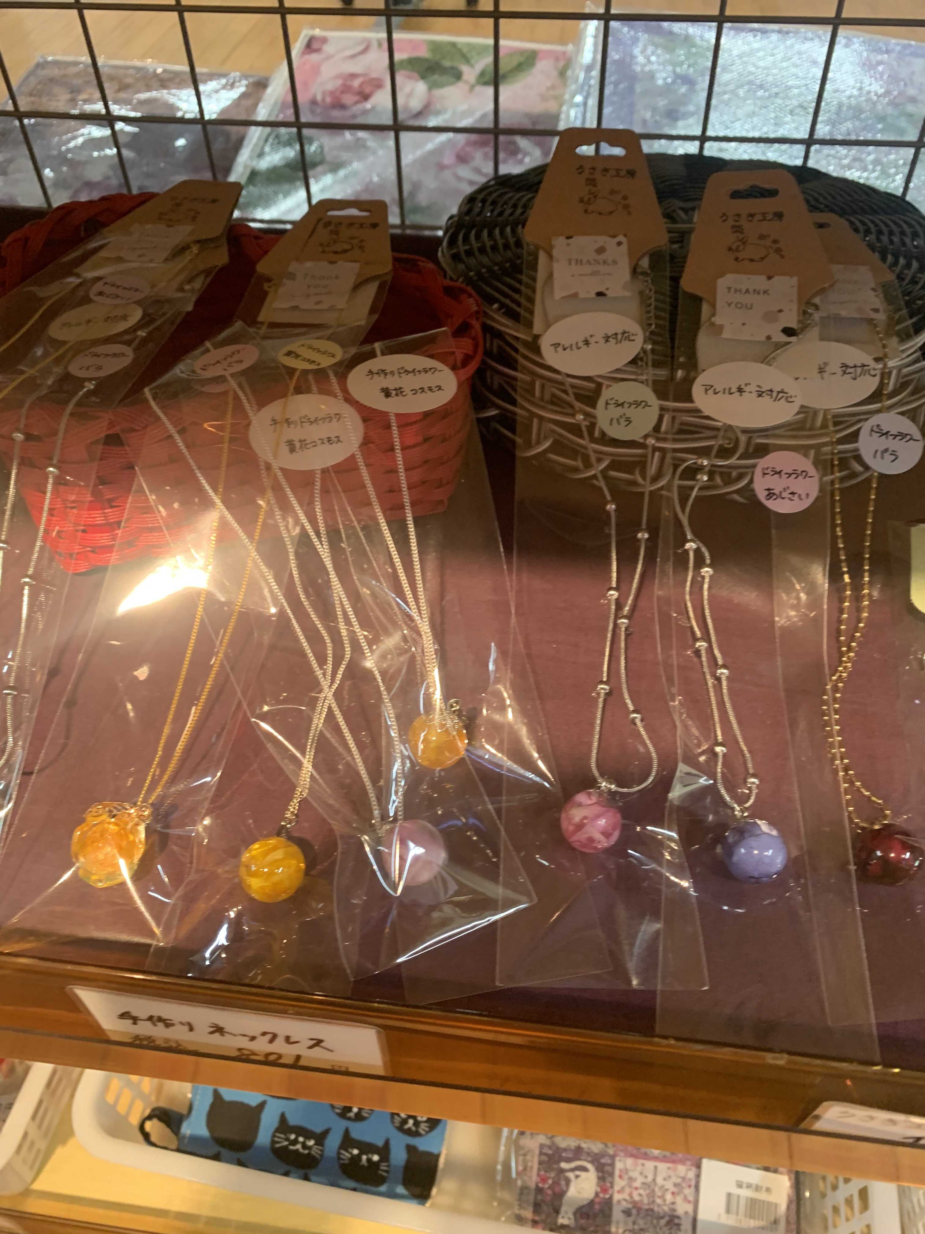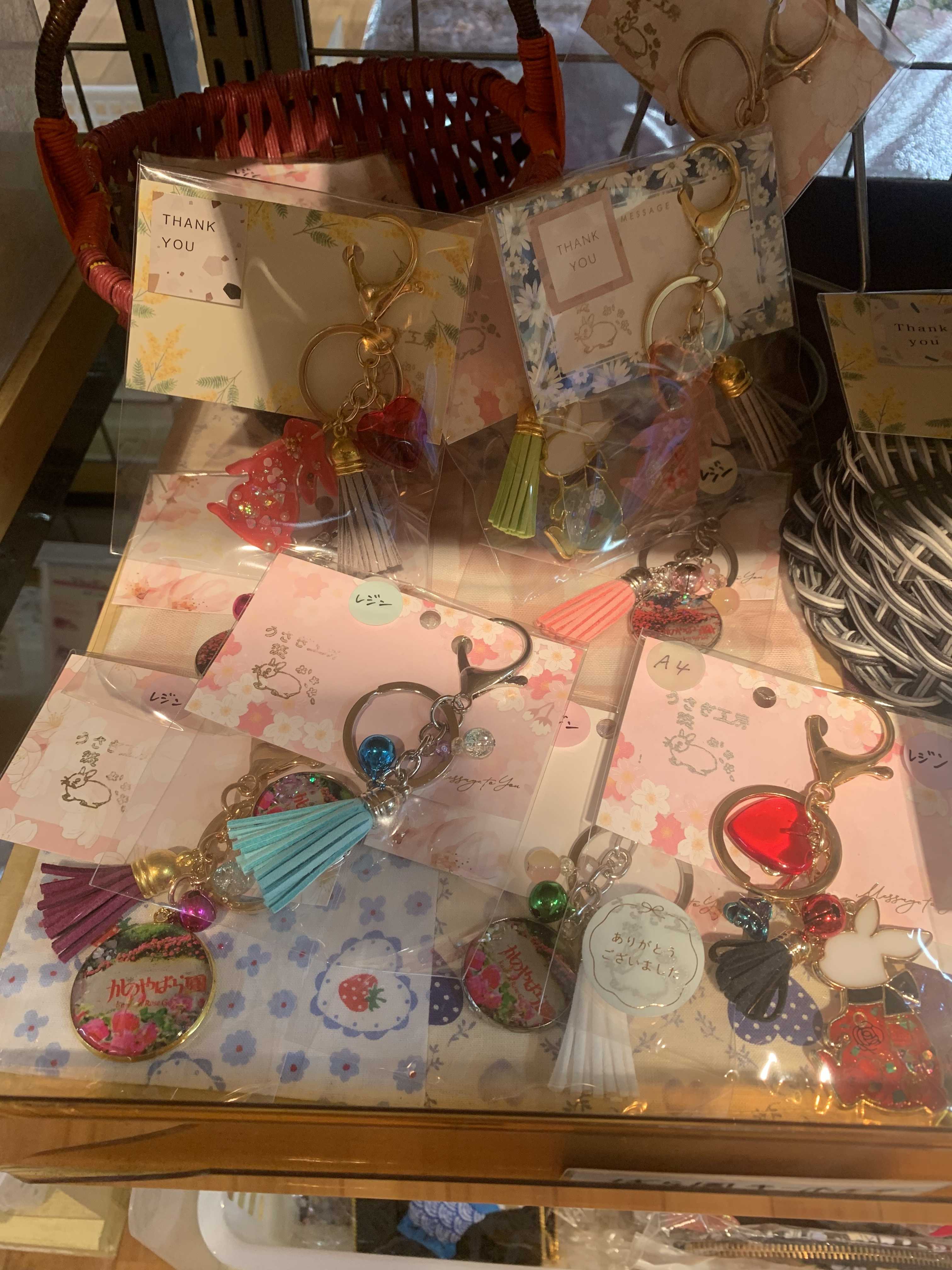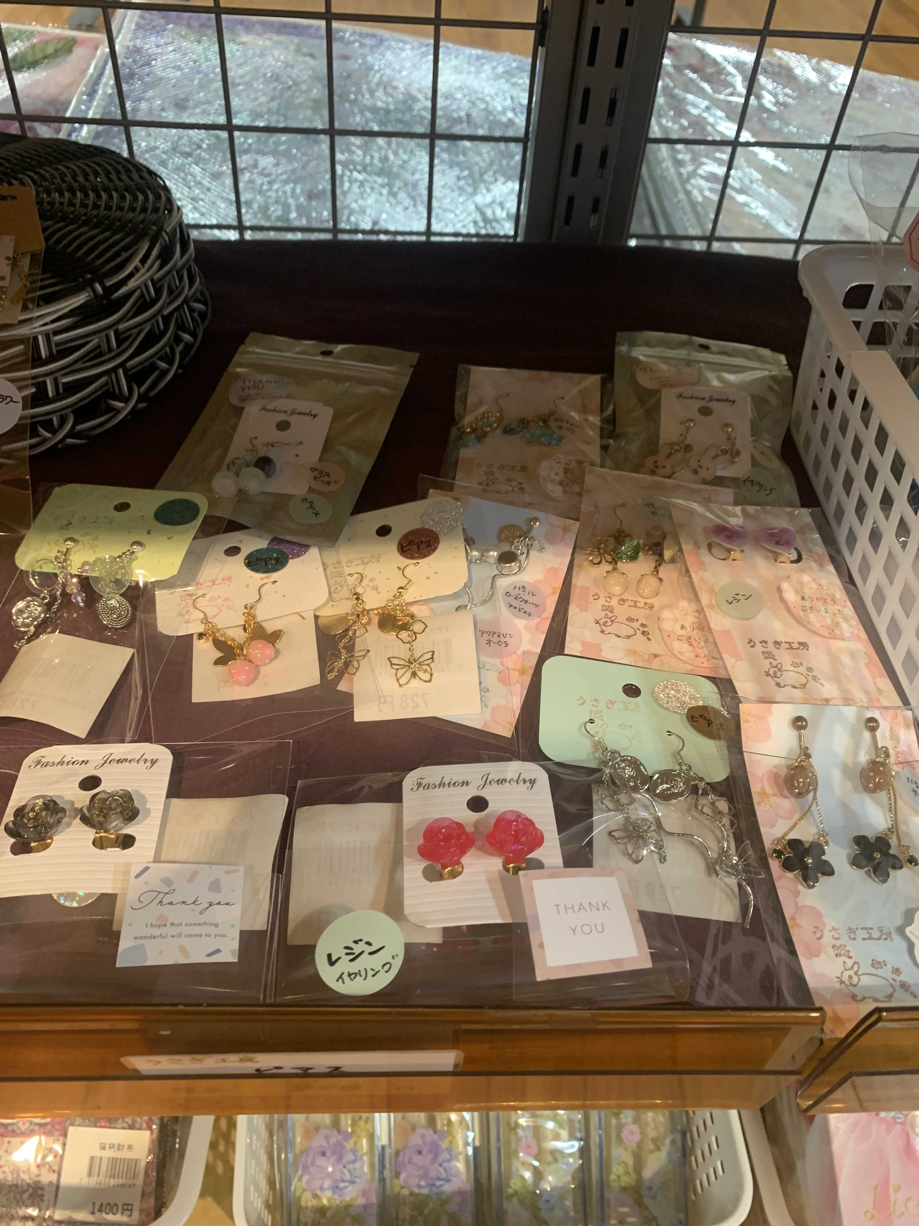 うさぎ工房悠の手作りアクセサリーが並んでいます✨