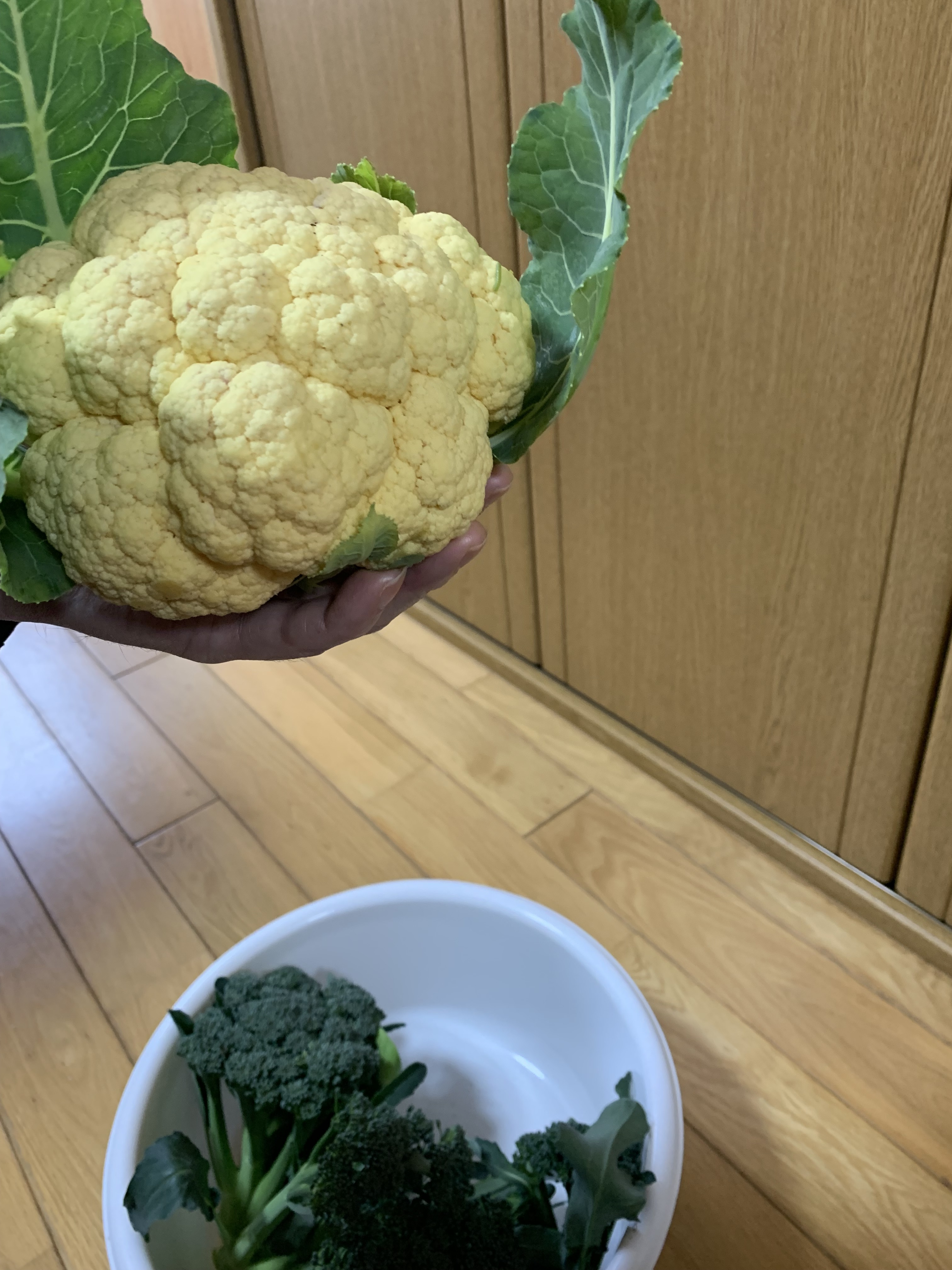 うさぎ工房悠の敷地内には菜園も有るよ🥬今日は、とっても綺麗なカリフラワーを収穫したよ!早速、袋詰めして納品に行ったよ🚗大根も、とても綺麗で葉付きで出荷したよ。どっ菜市場やスーパーキッド西原店にて販売中♪是非、一度御賞味有れ❣️うさぎ工房悠は、メンバーさん募集中✨バンドメイド好きな方、家庭菜園やってみたい方私たちと一緒に作業しませんか(^^) ご縁がありますように・・・ byうさぎ🐰