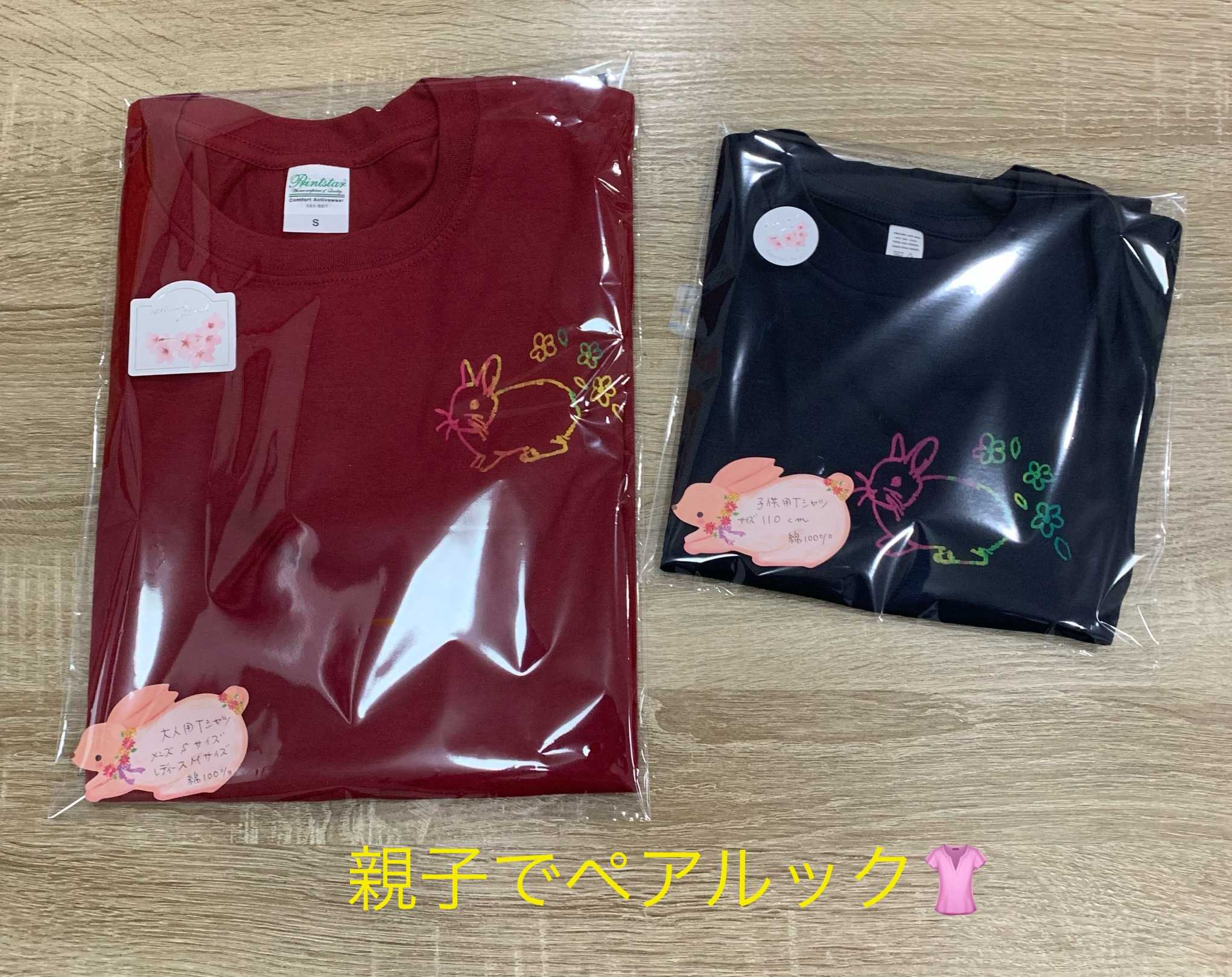 親子で楽しめるようなTシャツ😊子ども用⤵️ これは110サイズです♪ これは大人用⤵️両方とも綿100%ですうさぎのグラデーションが、それぞれ素敵でしょ♪うさぎ工房悠は5月1日オープン予定🗓️皆様と御縁が有りますように☺️ byうさぎ🐰