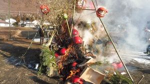 食べたり門松や前の年の飾り物やダルマお守りなど焼く行事が行われ正月も