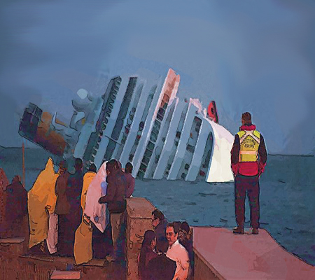 あのタイタニック号遭難を彷彿させるような事故がイタリアで発生した。何事にもいい加減で自己中心的と批判されることが多いイタリア人だが、今回も事故後の避難処置の不手際が問題になっている。特に船を座礁させ真っ先に逃げてしまった船長の責任が問われそうだ。る2012年1月13日(金曜日)、ローマから出港した超大型客船コスタ・コンコルディア(Costa Concordia)号がイタリア中部の西に広がるティレニア海に浮かぶジリオ島のジリオ港沖で、乗客・乗員約4,230名を乗せたまま現地時間で午後8 時ごろ岩礁にぶつかり、船体に70~100メートルの穴が開いてしまった。そのため船は急速に傾き、現在はジリオ島沖の500m地点にある浅瀬に船体の半 分ほどが沈んだ状態であるが、完全水没する恐れもある。乗客は3000人以上で、内訳はイタリア人が989人、ドイツ人が569人、フランス人462人、スペイン人177人、米国人126人などだった。乗客の中には日本人が43人いたが、全員の無事が確認された。船内から15日、韓国人新婚カップルとイタリア人船員の3人が救出された。また新たに2遺体が発見され、死者数は計5人となった。当初40名近くいると思われた行方不明者はだいぶ減って乗客11人、乗員6人の計17人ということになっている。ダイバーを含む救出チームによる海面下の船室の捜索も本格化している。部分的に浸水していた左舷側でイタリア人船員の声を確認し、救出した。13日夜の事故発生からほぼ2日が経過する中、救出チームは水面下を含め約1500ある客室すべてを確認する方針だが、船体が完全に水没する恐れがあるなど危険を伴っており、救出作業は時間との闘いとなっている。 コスタ・コンコルディアhttp://ja.wikipedia.org/wiki/%E3%82%B3%E3%82%B9%E3%82%BF%E3%83%BB%E3%82%B3%E3%83%B3%E3%82%B3%E3%83%AB%E3%83%87%E3%82%A3%E3%82%A2船価は5億6,500万ドル。全長290.2 m。幅35.5 m。吃水8.2 m。↓ネット上ではまだ以下のサイトが存在する。コスタ・コンコルディアのご紹介http://cruise-collection.jp/ship/costa_concordia.html≪ヨーロッパ最大規模をほこるイタリア船、コスタクルーズ。中でもコスタコンコルディアは最大級の船となります。フィットネスとリラクゼーションをテーマにしたコスタ コンコルディア。クルーズバケーションに斬新なコンセプトを取り入れた、海に浮かぶリゾートです。2つのデッキを占める総面積1900m2のフィットネス エリアとその広々としたスペースの中央に広がるスイミングプール、直接スパへアクセスできる美しいサムサラスイート、4つのプール(うち2つは開閉式のグ ラスルーフ付き)、スポーツバーを含む13のバーを擁しています。500以上の客室はバルコニーつき、広々としたデッキは眺めも最高。コスタ コンコルディアで海上リゾートライフをご堪能ください。≫「タイタニック号のようなパニックの光景だった」 大型クルーズ船コスタ・コンコルディア号座礁 http://anago.2ch.net/test/read.cgi/news5plus/1326637154/-100地元検察当局は15日、スケッティーノ船長(52)の身柄を拘束し、過失致死などの容疑で取り調べを始めた。船が常の航路よりジリオ島に近づいていたことが、事故の一因とみられている。船体の左側が岩礁にぶつかって穴が開き浸水した。また、この船長は救助を待つ乗客乗員が大勢残っているにもかかわらず避難していた。船長は事故直後、地元テレビの取材に「海図に載っていない岩礁にぶつかった」と話したという。 恐怖に襲われた乗客たちは救命ボートに乗ろうと駆けだし、100人ほどが海から救助された。生存者は現場を「タイタニックのようだった」と証言した。船が事故に遭ったとき、船内のレストランで妻と食事をとっていた男性(74)は「船長が5、6か国語で『パニックにならないように』と言っていた。人生の最後の瞬間だと感じたよ」と語った。座礁した際、ものすごい衝撃を受けたとともに、すぐに停電になり「電気系統の故障」とのアナウンスが船内に流れたがそれが嘘だというのは乗客の誰もが分かる状況だったという。東京都の不動産鑑定士、国武久幸さん(51)は夕食を終え、妻と共に船室で休んでいた13日午後9時半(日本時間14日午前5時半)ごろ、どーんと船が大 きな物にぶつかったような衝撃を感じた。テーブルの上の物が落ち、部屋の電気が消え、船がどんどん傾くのが分かった。廊下からは子どもの名前を呼ぶ女性の 叫び声や悲鳴が聞こえた。また、乗船していた美容師は、「大きな音が聞こえて、食器類が床に落ちて電気が消えた。だがスタッフは心配しないようにと言っていた」と述べた。乗員のファビオ・コスタ(Fabio Costa)さんは「誰もが救命ボートに乗り込もうとしたけれど、みんながパニックになり始めたので、押し合いが始まり、乗員らが助けようとした。多くの人が階段から転落した」と語った。(巷間の声)-----------------------イタ公の逃げ足の速さとヘタレ加減は、第二次大戦で実証済み -----------------------タイタニックで最後まで、船が沈んだ後客が水中で捕まれるようにって椅子を海に投げ込んでた姿が
