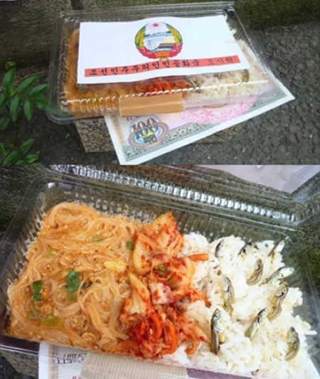 北朝鮮のお弁当(写真)http://awabi.2ch.net/test/read.cgi/news4plus/1336435509/-100≪北朝鮮の弁当が公開されて注目を集めている。7日の午後、あるオンラインコミュニティに『衝撃的な北朝鮮の弁当の写真』というタイトルで北朝鮮の弁当が掲載された。写真をよく見れば、内部がよく見える透明な使い捨て容器に『朝鮮民主主義人民共和国 トシラク(弁当)』と書かれた白い紙がふたの内側に付いている。弁当のふたを開けてみると、素麺とキムチ、白ごはんにまばらにミョルチ(カタクチイワシ)が入っているのが分かる。これを見たヌリクン(ネット利用者)たちは、「衝撃的だ」、「食糧難が深刻ですね」、「不味そうだ」、「イワシが飛び出しそうだ」など、様々反応を見せている。≫(^_^;) 敷いてある100ウォン札は意味不明ですね。日本円に換算すると10円くらいですが、北朝鮮の通貨はすぐ暴落するので実勢を把握するのは困難です。巷間の意見>>………………………………魚をご飯に突き刺すのはあの民族の伝統なんだな。http://f.hatena.ne.jp/shinkaiakikazu/20090207023401 ………………………………(^_^;) なるほど、そういう文化なんですね。(参照)スケキヨ丼http://www.wdic.org/w/SCI/%E3%82%B9%E3%82%B1%E3%82%AD%E3%83%A8%E4%B8%BC註:スケキヨ丼は韓国の伝統料理に対する日本人による侮蔑的表現。巷間の意見>>………………………………いま食ってる松屋の持ち帰りとたいして変わらないようなさすがに豪華には見えんとしても、そう貧相にも見えないのは俺の生活水準が北朝鮮に近いってことなのだろうか ………………………………(^_^;) この弁当の内容なら日本で買っても250円以上しますよね。巷間の意見>>………………………………この後たぶんシェイクしますよ。………………………………(^_^;) おそらくそうでしょう。巷間の意見>>………………………………創意あふれる南の学校給食時間http://www.donga.com/e-county/data/sssboard/udata/01003/20070629/34411/%C1%A1%BD%C9.jpg………………………………(^_^;) 地面と同じ高さで調理する方法は日本人に抵抗感がありますね。巷間の意見>>………………………………お前ら、、、これは北朝鮮軍では少佐以上でないと貰えない高級弁当だぞ?………………………………(^_^;) それは偏見でしょうが、実際に購入できるのは少尉以上か?巷間の意見>>………………………………本物なら『朝鮮民主主義人民共和国 弁当』なんて書かないんじゃねえの?北で売ってる物にせよ配給にせよ国名書く必要ないだろ。まだ金正恩への忠誠の言葉とか感謝の言葉とか書いてある方がそれらしい。なんか誰かが愉快犯的に作った捏造っぽいぞ。 ………………………………(^_^;) やっぱ、ニュースソースが韓国だから捏造もありか?北朝鮮紙幣が少しあざといですね。記事が面白いと思ったら下のリンクをクリックしてくだされ!! →人気blogRanking