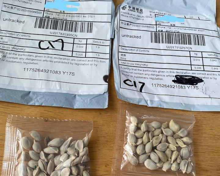 (◎農◎) 縦割り膿㽷障=☞テロの種郵便局と協議せず………………………………(◎農◎) 膿㽷障>>海外から注文していない植物が郵送された場合は、植物防疫所にご相談ください 最近、注文をしていないのに海外から種子が郵便などで送られてくる事例があるようです。 このような事例では、輸入時に植物検疫を受けていない場合が多いのですが、植物防疫法の規定により、植物防疫官による検査を受けなければ、植物は輸入ができません。輸入時に検査を受けた場合は、外装に合格のスタンプ(植物検査合格証印)が押されます。 もし、輸入検査を受けていない(外装に合格のスタンプのない)植物が届いたら、そのままの状態で、最寄りの植物防疫所にご相談ください。 なお、心当たりの無い種子が届いても、庭やプランターなどに植えないでください。また、種子がビニール袋に入っている場合は、ビニール袋を開封しないでください。 ※外装が未開封の場合、配達後に受け取りを拒否することもできますので、郵便局にご相談ください。 ※輸出国植物防疫機関が発行した検査証明書(Phytosanitary Certificate)が添付されていない苗や種子は輸入ができません。……………………………… φ<▼G▼>I GIGAZINE>>【謎の種】中国から謎の「種子」が送られてくる事件が続発謎の「種子」が中国からアメリカに向けて送られてくるという事件が続発しています。各州の農務省はこれらの種子を決して庭に植えないよう、国民に呼びかけています。27 States Issue Warnings About Seed Packets From China - The New York Times‘DO NOT plant them:’ Officials in multiple states warn of mysterious seeds received in the mail from China | FOX6Now.comアメリカの27州で「注文していない『種子』が中国から郵送されてくる」という不可解な事件が多数報告されています。バージニア州農業消費者サービス省は「同様の事件についての通報が1000件以上あった」と述べ、ルイジアナ州農林省は「送られてきた種子を100件以上確認した」とコメントしていることから、同様の事件が全米で続発しているとみられています。種子は小包に入れられて各家庭に郵送されているとのことで、ワシントン州に送られてきた種子の一例が以下。バージニア州に送られてきた種子の一例はこんな感じ。送られてきた種子の種類はさまざまあるそうで、ルイジアナ州農林省は「送られてきた種子の一部はスイレンの種子だった」と報告しています。パッケージにも一貫性は存在せず、「China Post(中国郵政)」の文字と中国語が書かれた白い小包で郵送されることもあれば、黄色い小包で郵送されることもあるとのこと。オハイオ州農務省が報告した、黄色いパッケージの例が以下。また、内容物が「宝石」「イヤホン」「おもちゃ」だとパッケージに表記されていたケースも確認されています。一連の事件は、レビューの評価を上げるために商品を無料で手当たり次第送りつける「Brushing(ブラッシング)」と呼ばれる詐欺に関連しているとみられています。各州の農務省は送付された種子にどのような危険があるか未知数であることから、決して種子を植えないように警告しており、一部の州の農務省は、「パッケージと種子をジップロックに入れて、すぐに手を洗って下さい」とパッケージ自体の取り扱いについても注意を呼びかけています。アメリカにおいて種子の輸入は、アメリカ合衆国農務省の動植物検疫局植物防疫課が実施する「植物防疫検疫プログラム」によって規制されており、郵送されてきた種子は植物防疫検疫プログラムで定められたルールに従っていません。種子に潜んでいる病原体や昆虫だけでなく、正体不明の種子が侵略的外来種だった場合には、生物多様性や生態系に悪影響を及ぼす可能性が考えられます。このニュースを報じたニューヨーク・タイムズは、「ワシントンの中国大使館はコメントの要求に応じませんでした」と記しています。………………………………<丶`b´>l BLOGOS >>【China Post(中国郵政)】海外から謎の種、日本でも同様の事例か 植物防疫所が注意呼びかけ日本の農林水産省植物防疫所は30日、「海外から注文していない植物が郵送された場合は、植物防疫所にご相談ください」とする文書を公開した。文書では、「最近、注文をしていないのに海外から種子が郵便などで送られてくる事例があるようです」として、こうした事例では輸入時に植物検疫を受けていない場合が多いものの、植物防疫法の規定により検査を受けていない植物は輸入できないことを説明。輸入時に検査を受けた場合は、パッケージに「植物検査合格証印」という合格のスタンプが押されるため、「もし、輸入検査を受けていない(外装に合格のスタンプのない)植物が届いたら、そのままの状態で、最寄りの植物防疫所にご相談ください」と呼びかけている。米では数日前から話題に 全州で警戒呼びかけ数日前からアメリカでは、注文していない植物の種が中国と見られる地域から送り付けられる事例が取りざたされて