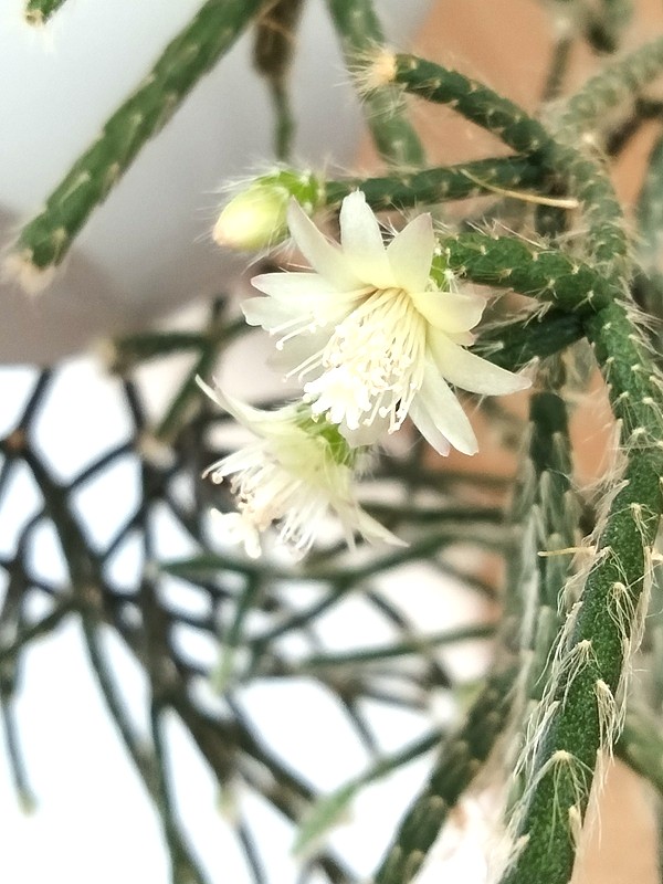 先日、家事の合間にむーさん 何処だろう? と見てみると居た 居たお腹の毛繕いの最中でしたでも、部屋の出入り口の方から 見るともたれ掛かってテレビ 見てる人 みたいで クスクス してしまったあちら方向には クローゼットの扉が有るのみですよ話は変わって ここ最近ちょっと 珍しい? お花が咲いて来て驚きました。この間 植え替えしていたリプサリス の親株の方お花の 大きさは7mm程です。可愛いです。このリプサリスの種類カスッサ だと思っていたらどうもお花が違うのです。お花が咲くとしたら 春 だと思っていたから暫く気づいてなかった と思う。健気 だわね毎日、10から20個のお花を咲かせてくれています。所で あなたのお名前 なあに ?
