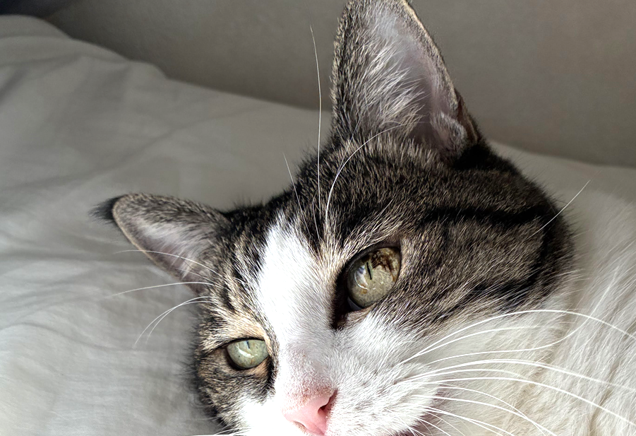 まだ 起きないのか?むーさんが 朝、起こしに来ます。夏は むーさんも 寝苦しいのか朝方に お腹が空くらしくて何度も 私を起こしに来ます。大音量で鳴くわけではなく「 なごなご 」ごにょごにょ 言っていますので私は ” あ~ 鳴いているな~ ”と 思いつつ 睡魔に勝てず聞こえたような 夢の中の様のような感じです。むーさんは 行ける部屋を徘徊して戻って来て 「 ね~~ なごなご 」 と私の ベッドに 上がって来て 「 かまって なご~ 」背を向けて 横向きに寝ていると私の 肩に むーさんは 前脚をのせて自分の方に引き寄せてきます。爪は 出ていないので痛くは無いですが私を 仰向けに 方向転換 させ顔を 見て「 なごなご 」すご技 ですかわええ ♡もはや 、これがされたくて待っている感。このやりとりはなぜか 夏限定 なのです( 夏以外は ゆっくり寝ていてくれます )はいはい もう 起きる時間なので起きますよそして、むーさんはご飯を食べて私が寝ていたところで 午前の部の睡眠に入られます眠い なご~・・・ZZZ