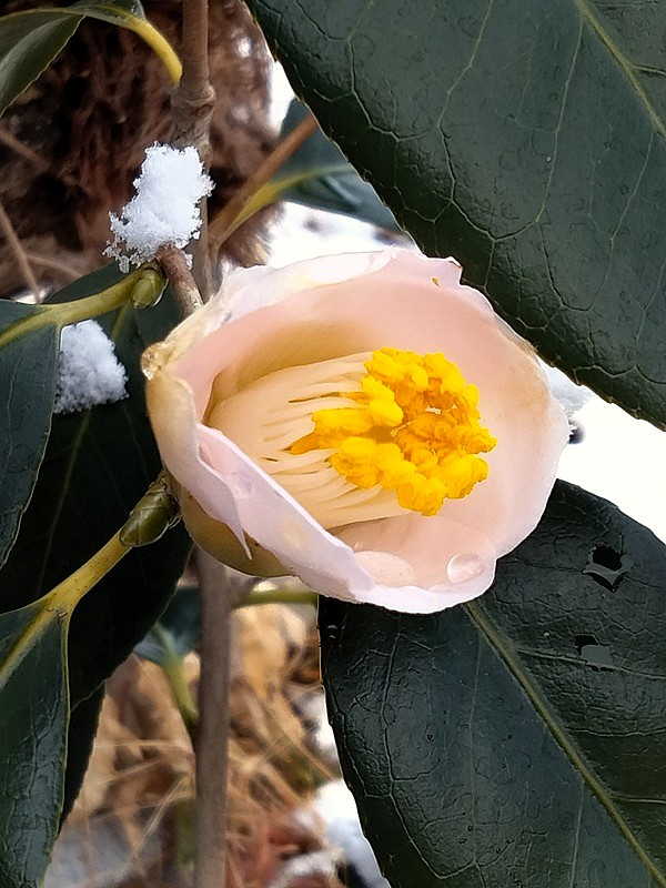 厳しい寒さが続いていますこちらの 地域は 2度ほど 30~40cm程度の積雪がありました。 そんな、雪解けに 用もなくお庭を ウロウロ しているとまだ 小さな植木鉢の中ですが椿 ” 無音の雪 ”が 咲いていましたかわいいですね~~花の大きさは 3cm 程の 一重 で侘助(わびすけ) のようです実家に 白の一重の 侘助 が植わっているのでよく似ているなと この 無音の雪 という 椿島根県の妙音寺 のヤブツバキが元らしいここのお寺は 松平右近 という方のお墓があり私の 好きな 暴れん坊将軍 の吉宗 の ひ孫 にあたる方 とかおととし たまたま手に取った 木です。私は 歴史は すごく 苦手 ですが徳田新之助さん のおかげでわずか ですが つながって楽しく お勉強出来ています* 新さんありがとうしかし見ていると 和菓子みたいで食べちゃいたい わね
