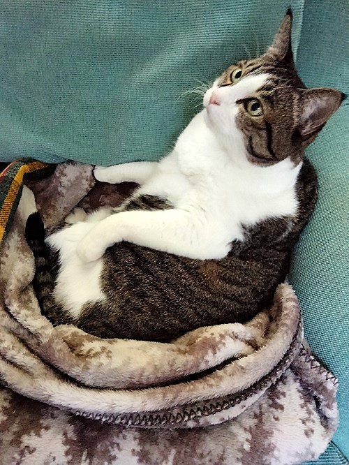 エアコンの室外機も気の毒よ。。あんなに 熱い所で ブンブン 周り続けて出来る限り 日を遮っているけど通りがかったら 「 ありがとうね 」 くらい言わせて下さい。さあて 猫のむーさんは28度~27度 設定のエアコンが稼働している部屋に大抵いますがたまに見かけないと そっと探してしまう私。” お~~い だいじょうぶか~~? ”椅子に 冬のひざ掛けをかけた秘密基地に 居ましたクーラー部屋から 2部屋離れた暑い部屋の 暑い中に。前脚 出してちょっとだけ 温度調節 していたみたいですむーさんは肉球 と お鼻が ピンクいのでここの色で 少しは体温 が 把握できます「 ちょっと チェック させてね 」 秘密基地を めくられてこの顏 であるうん、心配する赤さじゃないわまったく 心配性 だね この人は