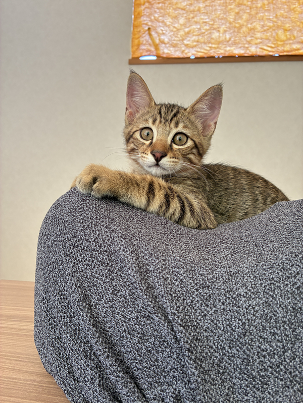 子猫を引き取って 3日経ちました。生後3か月は過ぎている(14週くらいかな?)2匹の オス猫 ですようやく 今朝から 食欲が出てきて子猫用の ウエットフードを1日 4回に分けて 食べています。ご飯を食べ終わると2匹で 鬼ごっこ や プロレス や かくれんぼがはじまります。子猫 特有の可愛い姿を見たくて音がする方を見てももう そこに居ない。。 すばしっこいのうなので 元気に遊んでいる時の写真はなかなか撮れませんなむくん は 夫さんのマッサージ機 の上がお気に入りそこで 爪を研ぐでないこちらあみくん はその隣で 人間観察をしながら 休憩中しかしこの様な 家族が増えるとは1週間前には 夢にも思いもしませんでしたよ。夢にも??そう、今思えば ですけど1週間ほど 前に 夢を見ました。ZZZZZZZZZZZZZZZZZZZZZZZZZ場面は うちの近所の コンビニです。辺りが暗くなった 宵のころ私が歩いて 駐車場に行くと猫が 座っていました。毛色は 背中がキジ柄でお腹の白い白キジの小柄な子です。ああ、はーちゃ(去年亡くなった猫です) だ と思い「 お待たせ~~ 帰ろうか 」と言うと駆け寄って来て私の前を 歩いていきます。車の通りが ある通りなので私は 携帯電話で ライトを照らして人間と 猫が 歩いているよ アピールをして前を歩く 猫に「 危ないから 歩道からはみ出したらだめよ 」なんて 声を掛けます。 その猫はちゃんと車から遠い方の 歩道を歩いてくれて私たちは そのまま森に消えていくのです。ZZZZZZZZZZZZZZZZZZZZZZZZZZZそんな夢を見たと 翌朝 夫さんにも話してたもんだから数日後、猫を 飼いませんか と知らない人に 声をかけられ迎えに行って あみくんと会ったらやや!!この子は 夢の子?しばし、見つめあう 2人的な 空気がありました。まあ、それは 私の思い込みが過ぎていると言うことも大いに有るでしょうからそれは、抜きにしてもなむくん も あみくん も 可愛いですがね。もちろん先輩猫の むーさん もやきもち焼いて 寂しくないようにいつものように 愛を おくるよ♡