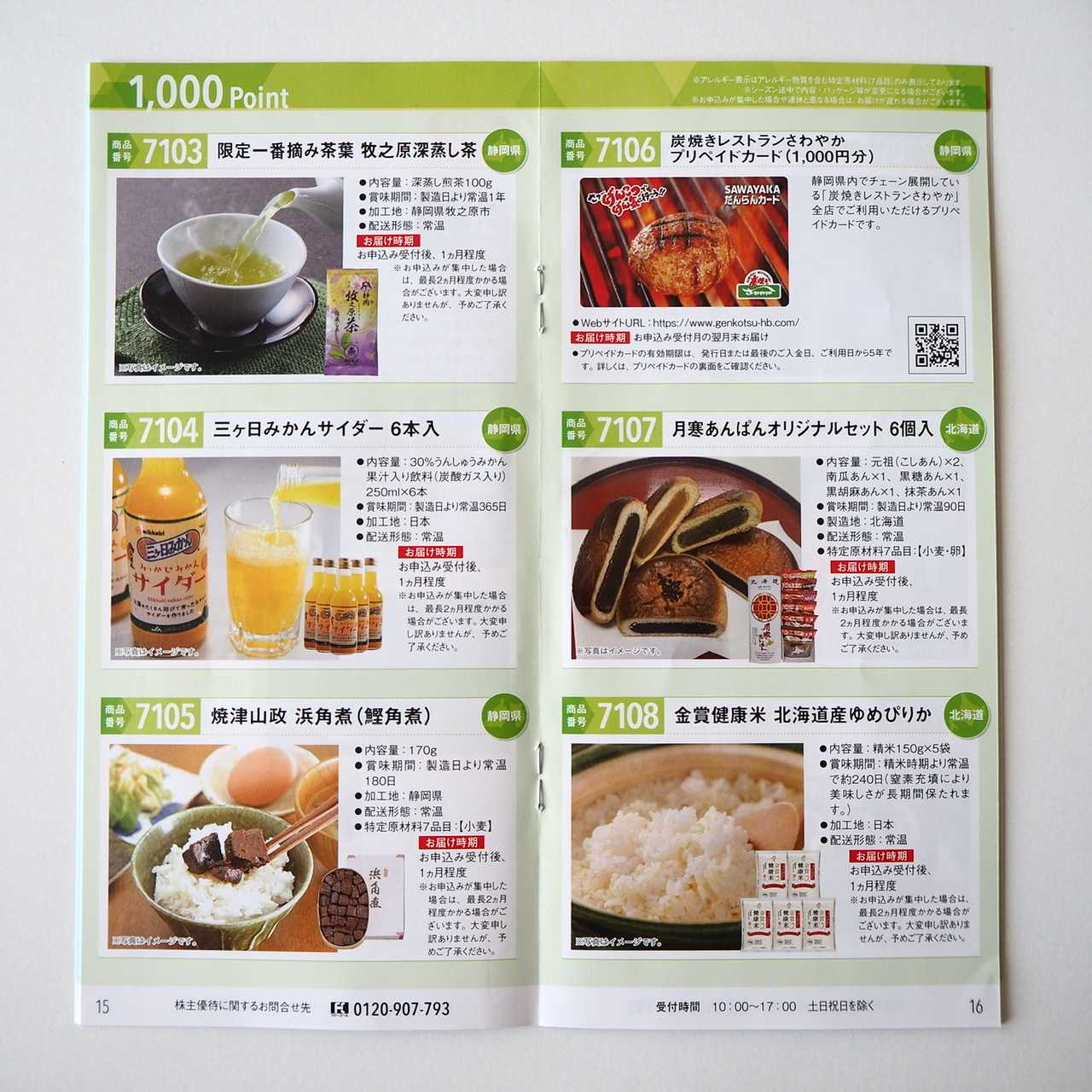 私は 100 株だったので 1000 ポイントの商品 14 点の中から 1 点選べました。