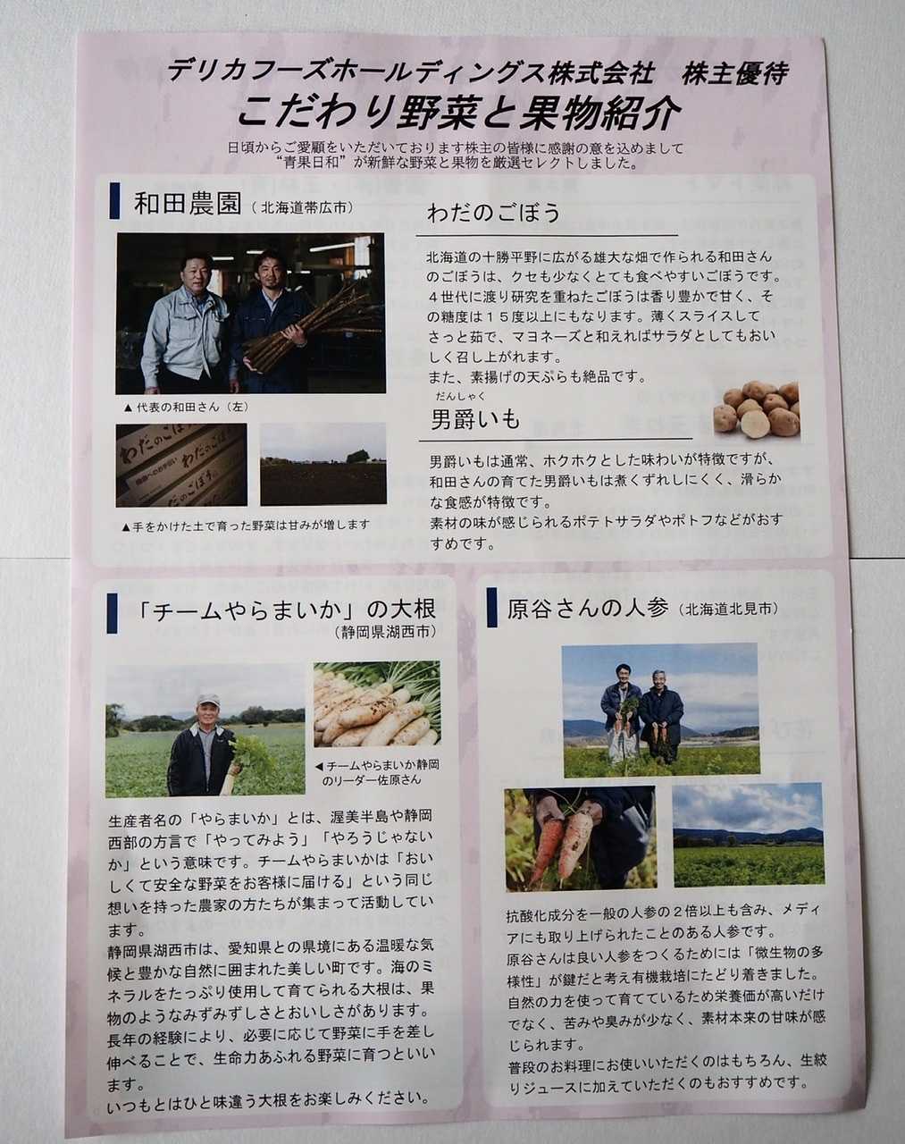 生産者さんの紹介リーフレットも一緒に入っていましたが、