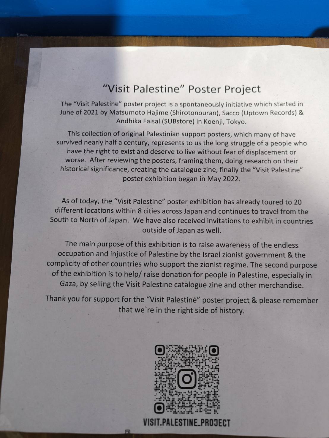 別の階でガザの展示も、やっていた。入る前にイスラエルの人にいろいろ言われた。英国の三枚舌外交、シオシスト、軍隊対民間人、少なくとも国連の定めるイスラエル領地に戻すべきだと考えます。