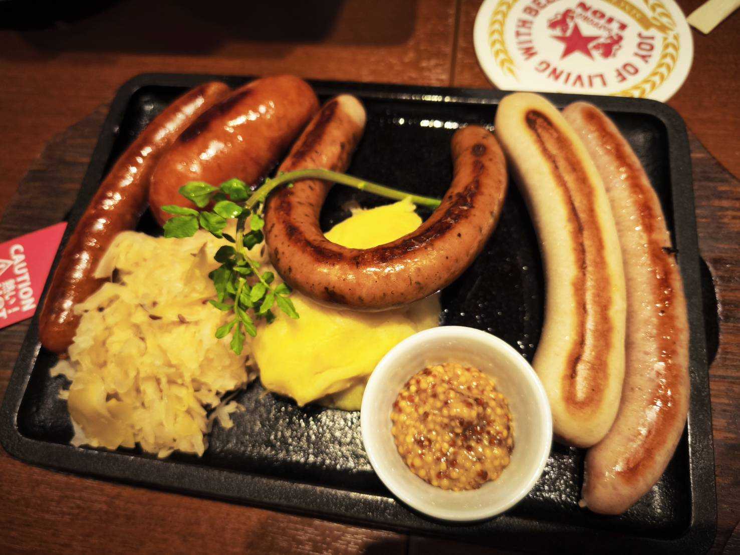 ソーセージ盛り合わせサラダジャーマンポテトアイスバインオムハヤシライス