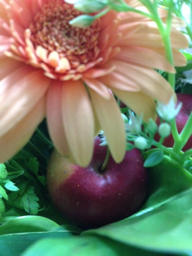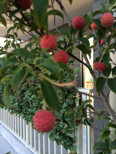 こんばんは小花物語へようこそこの赤にドキリとしました。。。歩道を歩いていて目の高さに現れたこの赤くてまるいモノにドキリとしました。わぁ~秋の色~って思ったものの何の実だろう???ヤマモモ?って一瞬思ったけどこの時期じゃないよね・・・この木はこの春店舗改装したお店の入り口付近に新しく植えられた若木何だろう?気になるきになるイニナル~~~~ネットで「ヤマモモ」で調べてみたやっぱり違う・・・「赤い実のなる木」検索ポチットナ。。。あったありましたヤマボウシだそういえば初夏のころ咲いてました。白くて可憐な四枚の花弁を広げて凛としたその姿が大好きな花でした。でもでもこんなにかわいい実がなるなんて知りませんでした~。そうだったのかぁ~ゴメンナサイそしてアリガトウって感じなんだかうれしいね名前を知るとなんだか親しくなったみたい。。。毎日歩く道明日も会えるね。朝の楽しみがひとつ増えたね。。。じゃ、また