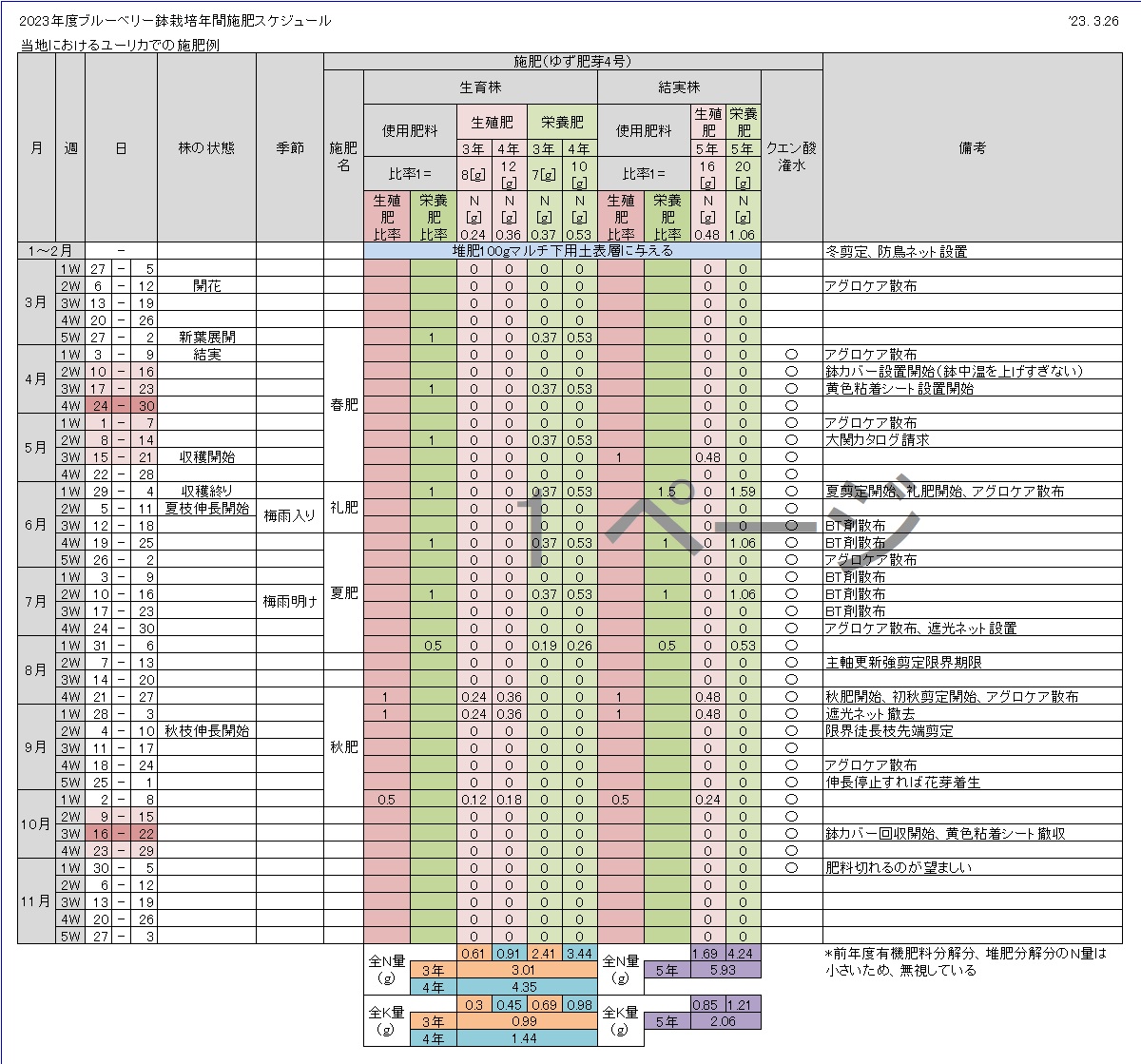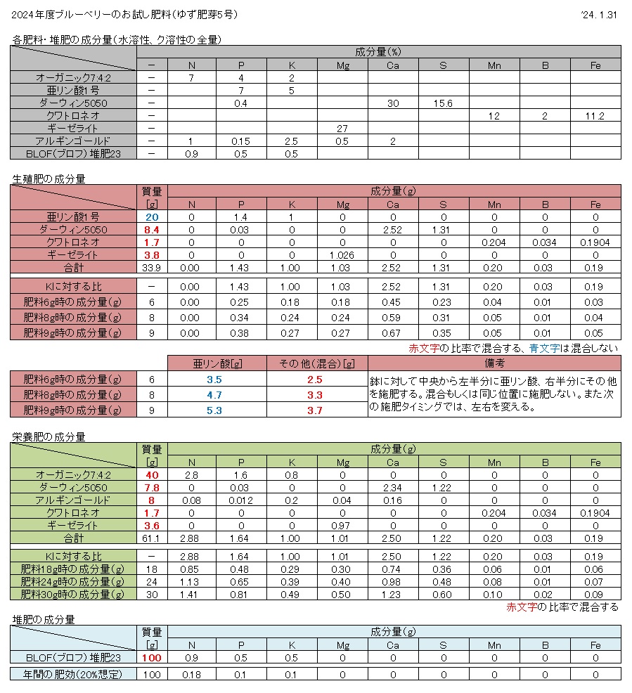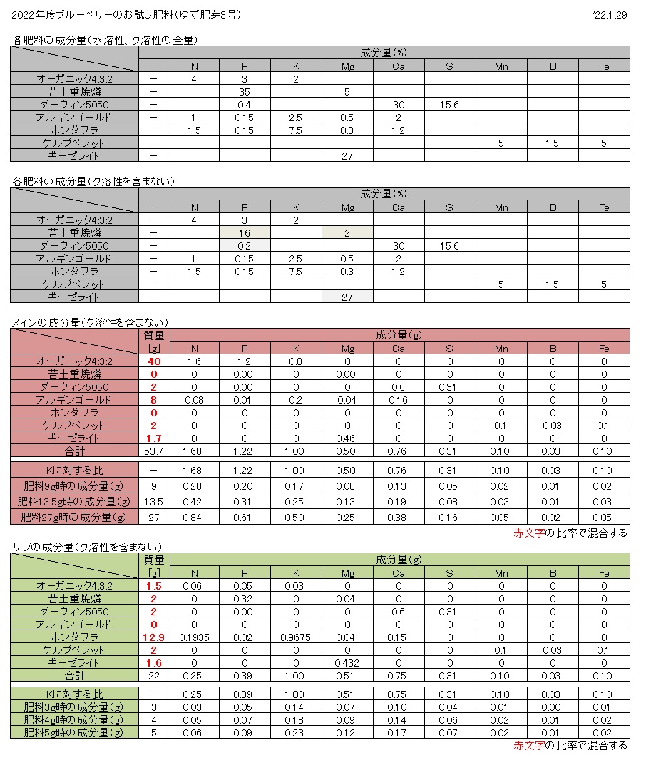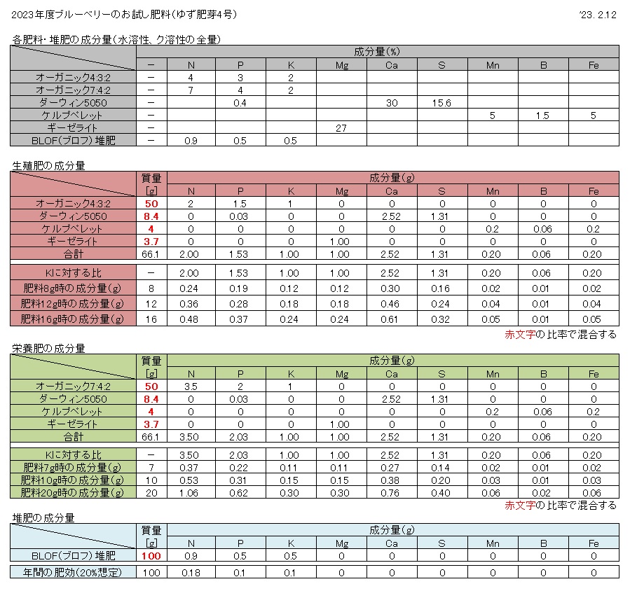 <ダーウィン5000 or 5050(N0-P0.4-K0-Ca30-S15.6)> ○硫酸カルシウム肥料。カルシウムを補給しつつ、土壌を酸性に保つことのできる資材。PHは4.3~4.5で硫黄分も含む。 ○粒状だが崩壊性はある。ただし初期からの肥効を安定させるため、使用時は粒の破片が残らないよう粉状にする。