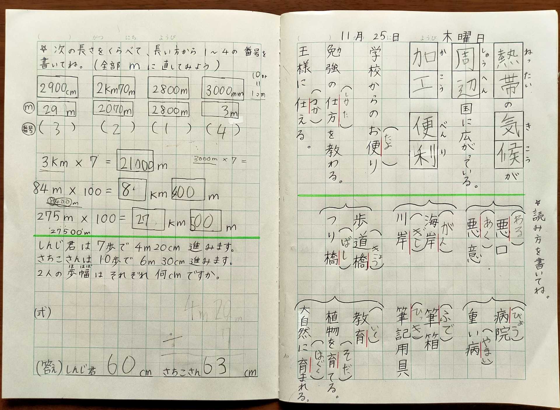 長さの単位、昨日間違えた問題をもう一度やってます。