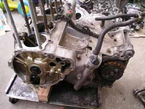 今日のタイガースは6回まで完封ペース、バイクいじりをはじめましょう。休憩の時、PCで結果確認。・・・えっ!?逆転負け?また、抑えの2人か?完投だったのね。昨夜から予定していたFzのエンジン始動テストは次回にまわす事にしました。ドナーは先週買ってきたコヤツ!邪魔なので小さくしました。お昼までの1時間、外装外して、エンジンを載せる木枠を大工仕事。Oh、あと20分あるじゃないか~。近所の暇なおっさんに手伝ってもらおうと電話したら、3分で登場。午後からにしようと思っていたエンジン降しが15分で済んじゃった(笑)。おっさんおおきに。昼食後すぐに作業再開。2時にはすっかり全バラになってしまいました。2時過ぎにT-C戦を見てたら、うちのクラブ員N西さんが「頼まれていたパーツ持って行くわ」以前中古で買ったCRキャブ。そのドレンボルトのねじ山がなめまくっていて使い物にならなかったのでした。わざわざ持ってきて頂きありがとうございました。缶コーヒー飲みながら雑談していると、良いお天気だったのが嘘のような通り雨。慌てて工具や外したパーツをなおしました(標準語:かたずけました)。今日はここまで、時間切れ。その後は家族でファミレでお食事会。一通りオーダーして、ビールとつまみを食べながらお姉さんが持ってくるのを待つけど、妻子の食事が終わってもまだ持ってこない。嫁:「遅いな~、言おうか~」おいら:「ビールとアテと子供の残り物で腹膨れてきたわ」そこへお姉ちゃん:「デザートお持ちしましょうか~?」嫁:「主人のがまだなんですけど・・・?」お姉ちゃん:「少々お待ち下さい。」今度は店長さん。店長:「大変申し訳ございません。オーダー漏れしてました。すぐお持ちいたしますので少々お待ち下さい。」おいら:「も~、え~わ~。いらんから・・・」1つしか頼んでないのに、デザートが4人前出て来ました。サービスだそうです。家に帰ってカップラーメンでした。