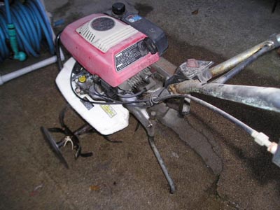 昨日から、何か変なお天気です。晴れてると思ったら、夕立みたいに雨が降る。上がった、と、思ったらまた降る変なの~夕方6時を過ぎてから家庭菜園のお手伝いをしました。夏野菜を作るのに耕すのです。根っからの不精者のおいらは、これまた四半世紀前に購入したミニトラクターの出動です。幾度と無く整備を繰り返しているお陰で、現在も現役なのです猫の額の耕作作業は20分ほどで終わってしまいました。長いこと(3年ほど)オイル交換してないのでオイル交換してあげました。手元に安物のオイルが無く、勿体無いけどワコーズの4CRを注入してしまいました。ちょっと贅沢な野郎です。左のフェンダーには長年のオイル汚れが堆積してましたので、ガソリンかけながら歯ブラシでゴシゴシ。コーションラベル貼ってあったんだ~気が付かなかった。贅沢させて、綺麗にしてあげたんだから、これからも仕事するんだよ。