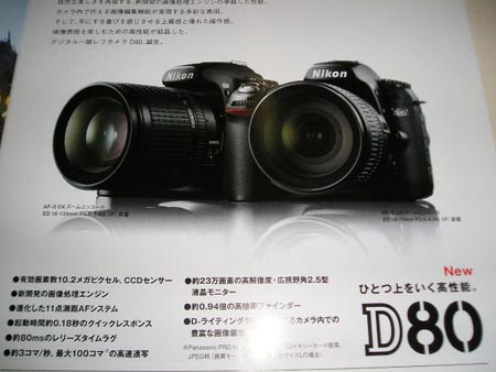昨夜のタイガースは気持ちよく勝ちました。今年は調子良くないけど、サヨナラ勝ちは良いですね~今日は、神社で春祭り。おいらも6時半に行って、提灯出ししました。でも、雨が降ったり止んだり。春祭りの頃は良く雨が降るのだおいらの誕生日は過ぎちゃったんですが、妻からのプレゼント。妻:「何かいる?」おいら:「う~ん、デジカメ」妻:「どれくらいするの?」おいら:「10万ちょっと・・・」妻:「無理!」おいら:「・・・・・・・」妻:「私のお小遣いからは無理やから、家計から出したるわ~」欲しかったのはhttp://www.nikon-image.com/jpn/products/camera/slr/digital/d80/index.htmカタログも貰ってきてます。オークションで見つけました!おいら:「ホンマに買うで~」妻:「・・・・・」落札したじょ~!でも、プレゼントを自分の金で、自分で買うのは何か変ですか?