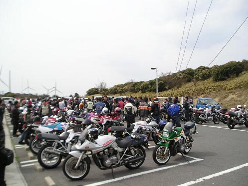 いきなり寒くなりましたね~。連日の黄砂地獄から真冬ですやん!次の日曜日は滋賀のクラブからのお誘いに乗って、福井へ行こうと画策してました。なかなかZ1に乗る機会も無いし、車検も間も無く切れるし、この車検切れたら2年はお休みだし・・・・気合入れて走りたいなんて思ってました。福井では自称Limited金沢支部を名乗る古参会員と遭遇するはずでしたが・・・・ 昨夜ブログつながりの方から、青山高原への招待状が有りました。青山高原では刀ミーティングがあります。おいらも刀乗りの端くれでは有りますが、現在車検切れと、整備中なので見に行けない。福井を取るか、青山高原を取るか、どうするおいら!苦渋の選択の結果は・・・・金澤渋茶さん、また今度ね。今回は青山に行って来ます。一緒に行く人も刀ではないので駐輪場のはずれで佇んでます