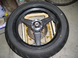今日は暖かかった~。すかっり春です。つ~か、初夏の感じも・・・・親戚のおじさんから大量に筍を頂きました。春の味覚です。さぁ~、今シーズン復帰予定の刀の手術準備。でも、今日も30分だけ。刀オーナーの大多数はセンタースタンドを外しています。おいらもその一人。普通は、軽量化か、マフラーの接触回避の為に外します。だからリア周り整備の為には何らかの工夫が必要になります。おいらは大体3通り。1:チェーンブロックで吊るす2:レーシングスタンドで保持する3:ジャッキアップ今回はジャッキアップを選択。リアホイールを外すのですが、アクスルシャフトがなかなか抜けないので、ショックハンマーで叩き出しました。ホントはベアリングにダメージがあるのでやりたくなかったがしょうがない。外したホイールからスペーサーを外します。段付き部分にハブが入ります。反対側ホイール本体に嵌るように、こちらも段付き加工。余りにぴったりですので、外すのに往生しました。作業中は気が付きませんでしたが、このスペーサーの厚みを減寸したら段つきの勘合部は大丈夫なのか?後日再確認です。ディスタンスカラーは10ミリオフセットする為に長いものを作り直しました。スペーサーを減寸するにはこちらも減寸せねば・・・。パイプの両端は確か嵌め込んだように記憶してますが・・・・外れなかった。でも減寸するにはここを解体してパイプを切削しないといけない。やっぱりカスタムは頭の体操。面倒だけど楽しいねぇ~