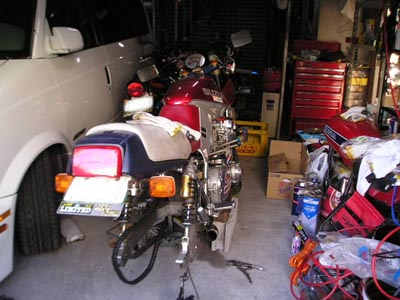 今日もいい天気。なのにおいらは午前中お仕事。午後からは刀に追い込みかけました。カタチになったでしょ・・・カタナ写真では綺麗に見える外装も2年強の埃は・・・汚いです。このあとオイル交換なのですが、折角組んだマフラーが邪魔です。ア~ア、また外すの~で、ついでなので、フィルターも交換してしまいましょう。巣窟内をゴソゴソ。やっぱり出てきました。無かったら買いに行かないといけないところでした結局、エキパイも半分外す羽目になりました。今回のオイルは4CR10W40を1L、4CR15W50を2L強のブレンド。テイストや如何に?で、あちこち磨いて行きました。どうですか~、総メッキ仕上げのフレーム。自転車みたいって言わないでねスプロケカバーに油性マジックで1N2345とシフトパターンを書き込みました。以前、無印で車検はねられそうになりました。無印でも通る事も有りました・・・・どっちやねん?これも忘れて、構造変更するかもう一度やり直すかでもめたシートのベルト。取って付けたみたいでしょ取って付けたんですがこんなに不細工・・・・車検が終わるまでの辛抱。ひとまず完成!この後は車庫にあるアストロを出して、キャンプ用品の積み込みです。どうせ、何か忘れ物があるのでしょうが・・・・何とかなるでしょう、と、のうてんきなおいらです。う~、カメラの方も気になる~(イライラ)。