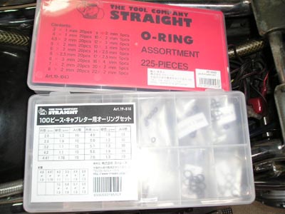 先日、不具合が発覚したTMキャブ。どうもO-リングの劣化ではないかと踏んだおいらは、ストレートでO-リングセットなるものを購入しました。しか~し、その中に入っていたサイズとは明らかに違う。内径7ミリ、線径1.5位が欲しいのに、内径が近いサイズの線径はどれも2.0。押し込んでは見たものの無理でした。そこで、今日仕事中、東大阪鶴見緑地ストレートに寄ってきました。手に入れたのはこれ、100ピース・キャブレター用オーリングセット。そこそこ良いお値段でしたその中にあった内径7ミリ、線径1.5をセットして挿入。セットしてみると、どうも緩いようです。もう少し、別の物を探すと、内径5.8みり、線径1.9が良い感じ。ただ、内径が明らかに違うので無理やりです。嫌がる相手を強引に・・・・違う?経年変化で千切れないで欲しい。キャブを組み直し、車体に取り付けただけで、テストはまた今度。全所要時間60分也!
