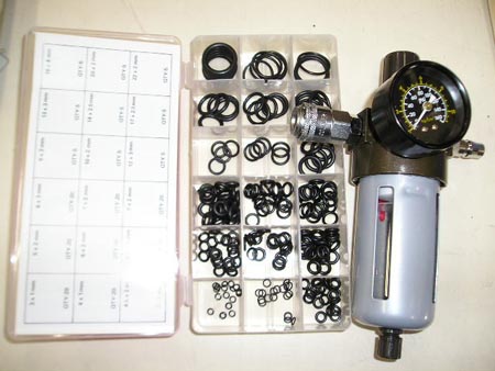 今日の大阪はえげつない黄砂です。こんなの大量に吸い続けたら塵肺にならんか?ちょっと心配(塵肺とかかってる?)になったおいら。昨日、刀に使ってる、ミクニTM36の不具合。多分、Oリングのヘタリだろうと思ったので、Oリングを買いに行きました。仕事中、ツール王国に立ち寄った。入り口の自動ドアが開かない。んっ?{臨時休業}の張り紙。コラ~!たまにしか来ないのに休むでない!年中無休の謳い文句はガセか~帰り際、次々やってきた客が同じ表情でした。仕方がないのでストレートまで行き買ったのがこれ。耐油性のOリングセットとレギュレーター。Oリングは耐ガソリン性に乏しいかも知れませんが、一度試してみます。解けちゃうかなぁ?レギュレーターはサンブラする時に定圧と水分分離が目的の物です。以前使っていた物はおいらの不注意で破壊してしまいました。結構高い物なので今度は気を付けます。はぁ~、時間が欲しい。早く、キャブを組み立てたいよ~