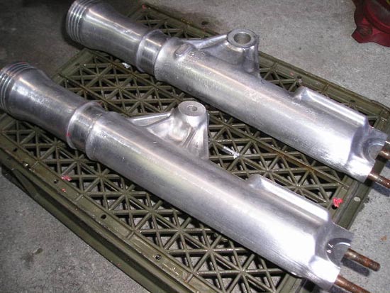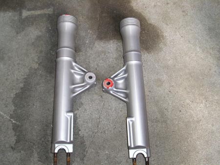 CB1100Rのレストア・・・・・・プチっとな午前中子供たちとプールに行きました。昨夜まではエキスポランドのカリビアンリゾートに行く気満々でしたが、調べたら親子4人で1万円じゃ足りない事が判明急遽、茨木西河原市民プールに、http://www.city.ibaraki.osaka.jp/ibaraki/shisetsu/puru/nishigawarapuru_s.html3,000円ですみました夕方、久し振りに「寿司くいに行こう」という事だったので、僅か30分のレストア作業。プチレストアって時間の方ですねCB1100Rcのフロントフォークは何故か銀色に塗られてました。イメージが違いすぎるので、やっぱり赤にしましょう・・・・で、剥離作業です。サンドブラストもいいけど物が大きいので剥離材で行いました。 用意したのはカンペ(?)の剥離材と刷毛だけ。スプレー式のもあったはずなのに、探したらこれしか出てこなかった買いに行くのも面倒だしね。このゼリー状の物(とんかつソースのような感じ)をお好み焼きソースのように対象物に塗って行きます。塗るというより載せていく感じです。注意しなければいけないのは肌に着いたら結構痛いですよ。 塗った直後から皮膜の弱ってる所からミシミシと音を立てながら皮膜が浮き上がってきます。ホラー映画の変身シーンで血管が浮き上がって行くような感じに見えます。おいら変?数分も放置したら全身水疱瘡ですいつもなら真鍮ブラシとスクレバーで削ぎ落とすのですが、何せ貴重なパーツですので、無理せず、歯ブラシでゴシゴシ。やっぱり作業効率悪い最後に水洗いして綺麗に・・・・なってません数回同じ作業を繰り返すのですが、ここでタイムアップ。100円寿司に連れて行かれました。