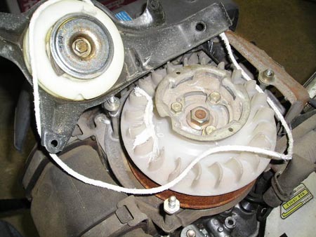 先の日記更新後、作業しました。簡単に終わると思っていましたが、トラブル発生!ファンの上にもちぎれたロープの残骸。ロープを新品にしたかったのですが、手元にあったロープの径がワンサイズ大きかった。仕方がないので、短くなったロープで組みなおすことにしました。左側に写ってるクラッチのボルトを抜くと中から長~いゼンマイが出てきます。ここでおいらの不注意・・・・・ビヨヨヨヨ~ンゼンマイがほどけてしまいましたこれを組み立てるのに30分以上かかりました。ゼンマイって手強いね~。見かけ以上に強い反発力!どうにか組み上げましたが、近日中にロープは新調しなければ・・・・あ~ぁ、疲れた~。