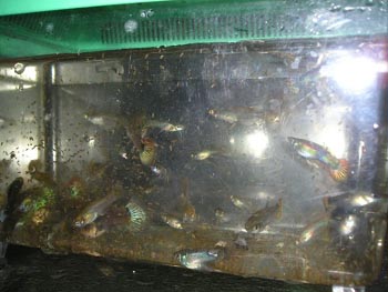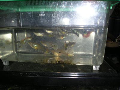 今朝、グッピーが1匹死んでたここ10日ほどで10匹近い。やっぱりこの暑さで煮えてるのかもそんな事を子供と話してたら急に増員したくて、夕方獲って来ました。2すくいで、30匹ほど獲りましたが、綺麗な奴だけ十数匹。大きい水槽に移しました。多すぎて、強制収容所みたいです 突然ですが、おいらエキスポランドのプールって行った事ないのだ。行った事ありますか?GWに不幸な事故で休園、今月開園してからはプールだけが盛況だそうで・・・子供たち連れて飲みに行こうかなぁ~じゃなく、泳ぎに行こうだ