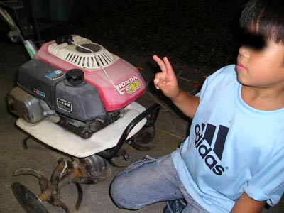 一昨日からの腰痛(腰左側)・・・・原因が判りました。多分、木曜日夕方に息子とキックボード(?)で往復1キロ走ったためです金曜日は仕事の応援頼んで乗り切りました土曜日は大分マシになったと思ったら、今度は右側に激痛悲惨です昨日、バイク屋師匠と共にスーパーツール王国に特殊な工具を探しに行きました。残念ながらここには無く、ストレート寝屋川店に行きました。そこには求めていた物がありました。師匠はたまにしか来ないので、目に付く物を次々と・・・・・おいらは何にも買いませんでしたが・・・・と、言うのは、本日奈良の本店にてガレージセールをやってるのを知っていたためです。朝、子供2人乗せ、40分かけてやってきました! 10時丁度に到着、既にセールが始まってました。大量購入する人続出で餌に集るグッピーのようですおいらもグッピーになりました。商品の中には昨日師匠が買ったものや欲しがっていた物が大分安く販売されてました。サイズが合えば欲しかったのですが・・・・ツナギ(300円)。おいらのサイズが無かったのでやめました。結局これだけ買って12200円也!リールエアホース8000円、コードレスLSDハンドライト2900円、LSD懐中電灯1000円、エポキシ接着剤300円、10円のストラップ2本(オマケ?)戦利品を携え、40分かけて帰ってきました夕方、子供とグッピー退治。今日はメスばかり3匹と不漁でした。昨日、今日、誰か獲ったな