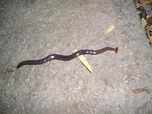 昨夜見つけた謎の生命体(体長15センチ)の正体が判明しました。その前にバイクに搭載する為にETCを注文する事にしました。お友達と合わせて、車検証のコピーをメール便にて10月30日に発送しました。ところが、相手先からは到着してない、との事?行方不明ですか?早速、クロネコヤマトに問い合わせ。昨夜の回答では、「30日にお預かりして、30日に配達終了しました」そんな、アホな~、メール便は2日くらいかかるでしょ・・・って言うと「そうですね、そんなはずありません。もう一度調べてみます」暫くすると、メール便を引き取ってくれた担当者から電話「違うバーコード擦ったみたいで・・・」実は、その日に届いたメール便の袋を再利用したんで、そこに貼られていたバーコードを擦って、配達済み扱いになってしまっていたようです。「どうさせていただきましょう・・・・?」って、いきなり紛失扱いかいな「配達してないんだから、オタクの社内か関係者が持ってるはずやんか!調べて配達してください」昼に電話がありました。「本日配達しました。御迷惑お掛けしました。」やれやれ・・・・受け取り先に電話したら、「来てないで~」ウッソ~!どないなっとんねん!ヤマト! で、謎の生命体ですが、どうやらヒルの仲間で『コウガイビル』というものみたいです。吸血はしないので人類には影響なさげ。ただ、ミミズを食うエイリヤンのようです。かなりキショイ勇気があるなら調べてみるべし。お食事中なら止めた方がいいよhttp://home.n02.itscom.net/wad/u/uta2.htm