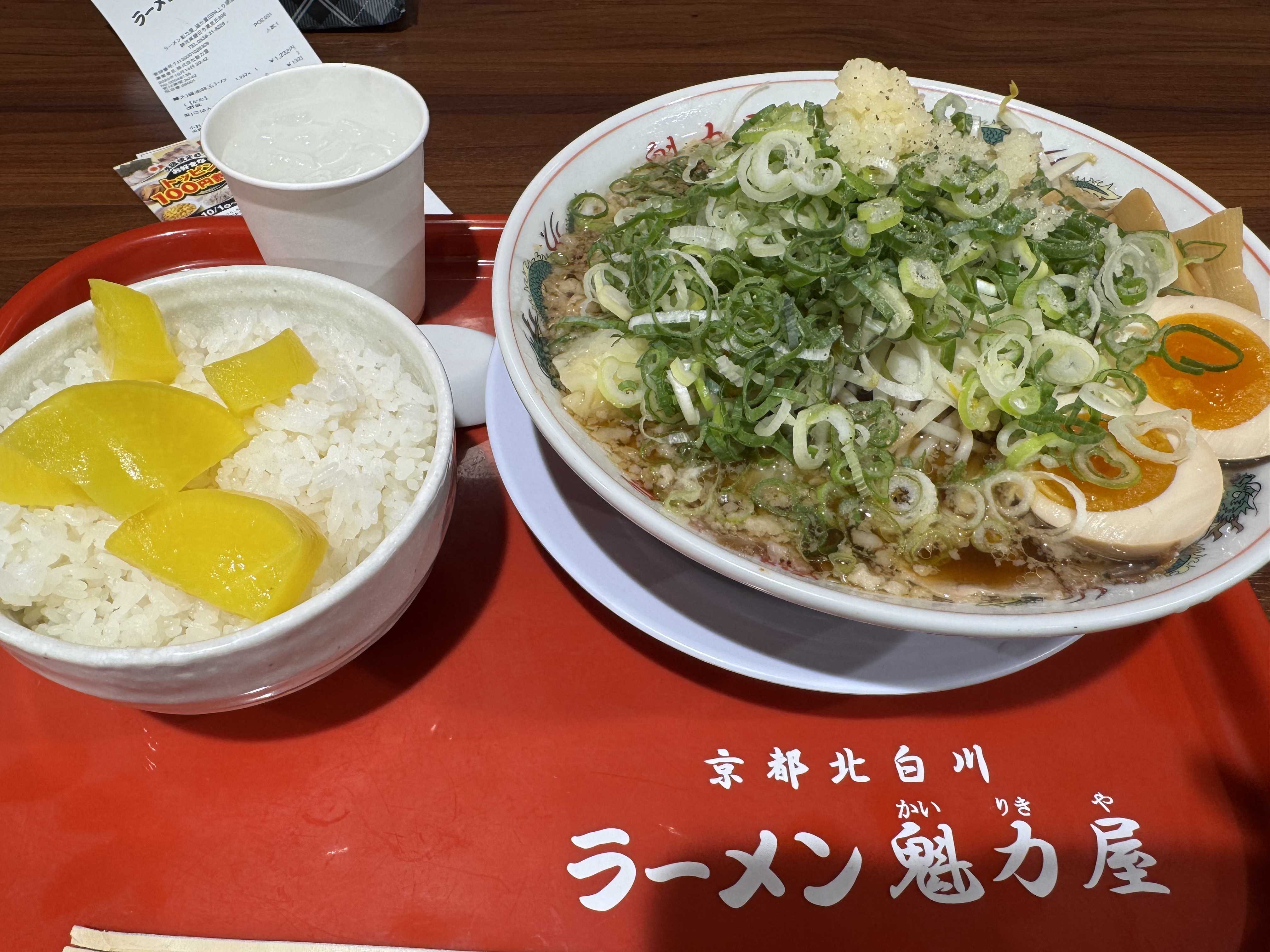 麺2玉にして野菜トッピング、更に山盛りのネギとジャリジャリなるくらいニンニク入れたった(^○^)