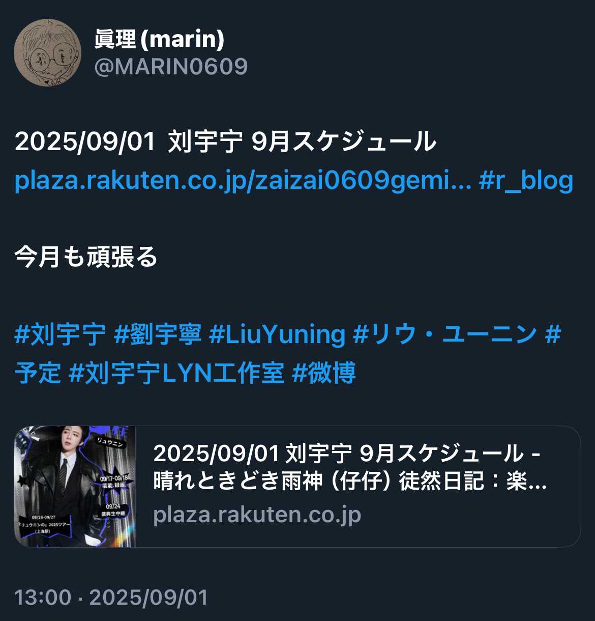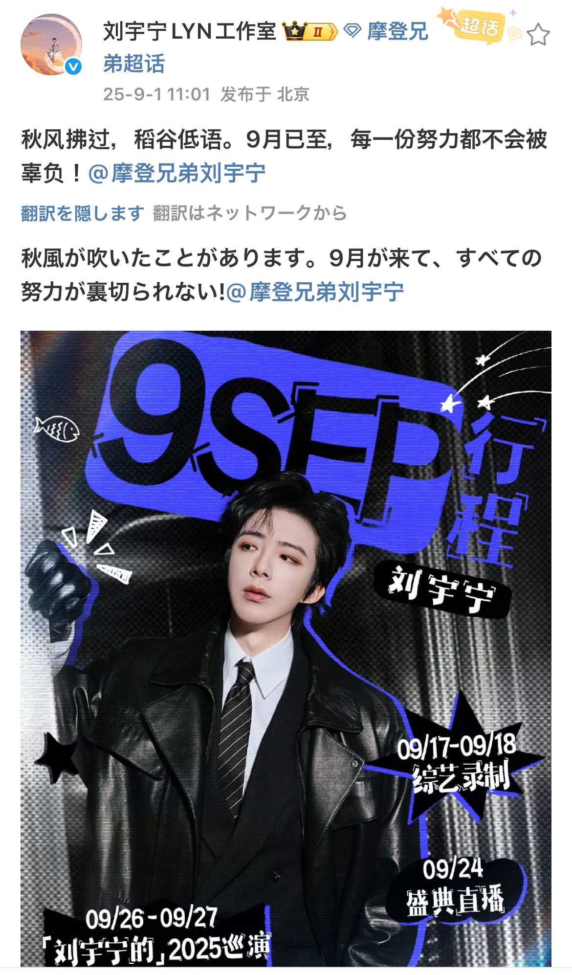 刘宇宁LYN工作室微博 https://x.com/marin0609/status/1962364983179932013?s=46&t=-2jEr4huzFWgpqRZ3jp44g