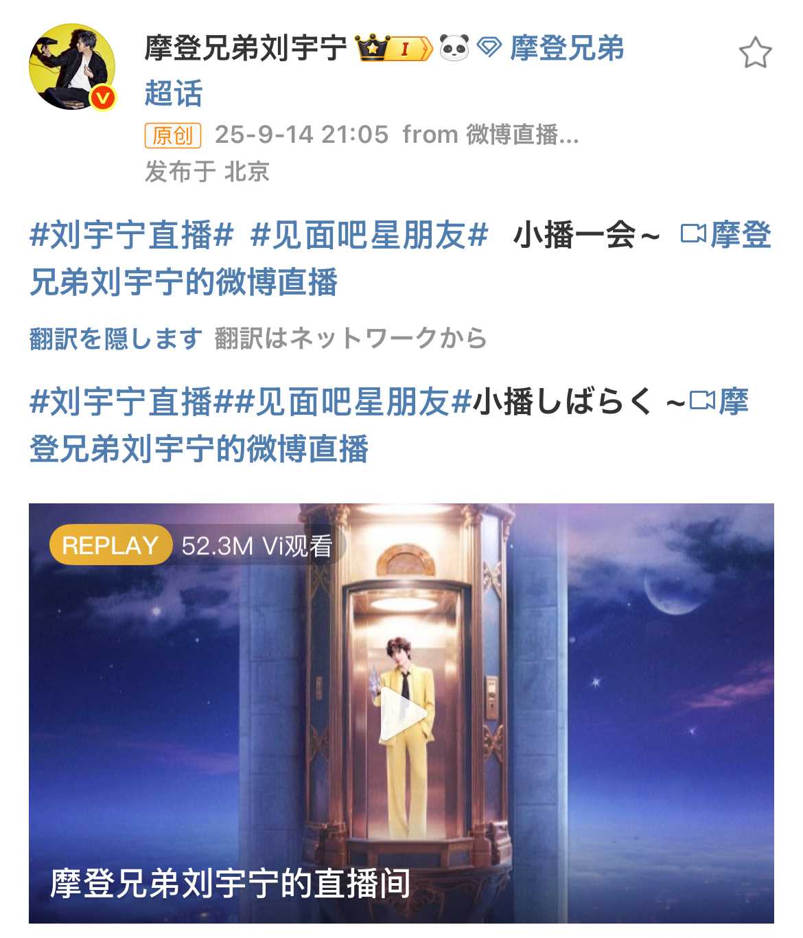 2025/09/01 刘宇宁 9月スケジュール 2025.09.01