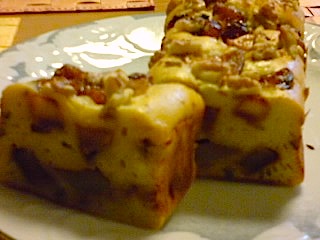 最近お気に入り登録させていただいたセレブなご夫人に触発されて、ここのところ久々にいくつかケーキとかパンとか焼いてみました。こちら2週間くらい前に焼いたりんごとくるみのケーキ実はちょっと失敗。水切りヨーグルトを使ったパウンドケーキのレシピだったのに、卵泡立てたらどうかしらんと勝手にレシピを変更。その結果…、グニョッとした妙な食感。ちょっと蒸しパンちっく良く言えばしっとりしてるんだけれども、やけに密度が濃い感じでずしりと思い。そして、昨日、シナモンロールを焼いてみました。がこちらも、ちゃんとレシピを確認せずにやったものだから、味はまずまずだったけれど、見場が…。いかにもロールパンだ。後でいろいろレシピを見たら(初めに見ろよって…)溶かしバターを塗る(渦巻きが消えないのね)とか、ハの字にカットとか、無視してましたね。もともと私、レシピ通りに作れないという習性を持っているようで、ついつい勝手にアレンジしてしまう。それも、一度レシピ通りに作ってからアレンジすれば良いものを、いきなりやってしまうものだから。で、今日はキャラメルアップルケーキです。レシピの写真はイマイチりんごが少ない感じ。食べるの2人だし、量もちょっと多いかな。でもキャラメルの香りは効かせたいし。とカラメルソースとりんごの量はそのままに、他の材料を半分にカット。卵白1個分のメレンゲなんて、なんともちょびっとで頼りない感じではありましたが、やはり強引にすすめてしまいました。焼き上がりをカットしてみると…、や、やわらかい。大丈夫か…旦那がまずひと口。「うん、美味しい」この言葉、全く信用していない私も恐る恐るひと口。おっとこれは美味しいほっほっほっ。今日はバッチリでしたねぇ。こうやって上手くいってしまう時があるから、直せないんですねぇ、この習性。