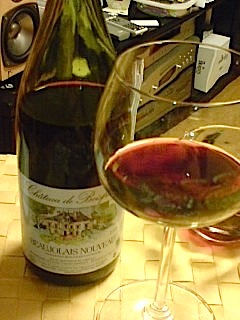 遅ればせながらのボージョレ・ヌーヴォ、今日はコチラオーガニックのシャトー・ド・ボア・フランをいただきました。19日(木)にもモチロン飲んだのですけれど。あの日は近くの百貨店で試飲をしているというので、仕事も早々に切り上げて突進。でもねぇ、試飲してもよくわからなかったんです。第一印象は、あれ、薄い。大体ワインてガブッとある程度口に含まないと味がわからないんですよね。それをチビチビ飲んだのが失敗。さらに空きっ腹だったので、だんだんフラフラしてきちゃったりして。結局、濃いめですって言われたハーフボトルを2本買って帰りました。帰ってお料理と一緒に飲んだら試飲の時とは別物みたいに美味しかったんで、まぁ良かったかな。このボージョレ、地域も同じで葡萄の種類も同じなので、そんなに大きくは違わないような気がします。葡萄は99%がガメイなんだそうで、なるほど…。ガメイってあまりフルーティではないですよね。どちらかというと渋味系。それがヌーヴォだと渋さ控えめだから、薄い?ってなるのですね。がぶがぶ飲めちゃうわけです。でも、以前の様に感動はしなくなってしまいました。ちょっと残念。もうひとつ、今日は上手くいきました。何年前の缶かしら?って言うくらい昔々のドロップの缶。蓋をあけるとこんな具合。バナナ&ラズベリー&ブルーベリーケーキです。信じられないくらいシットリ。ほんのりバナナの香りと2種類のベリーの酸味が良い感じでした。ちえぞうさんのお言葉を借りれば、まさに激ウマ!ほっほっほーっ。