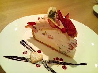 造幣局の桜の通り抜けを見に行った帰りに寄りました。お店のショーウインドーに大きなタルトの見本がい~っぱい並んでいて迫力満点。さらにお店の中に入ると、その見本に勝るとも劣らないホンモノのタルトがいっぱい並んでいます。お昼時ではありましたが、ここはやっぱりタルトでしょう。季節限定の桜と苺のタルトです。苺は甘酸っぱく、クリームは桜の香りでふんわりと柔らかいです。底のタルトはパリッパリ。ホールの迫力と見た目のボリュームとは裏腹に、すご~く軽いケーキでした。マンゴーと苺のタルト。クリームがぷるぷるで苺の重さに耐えきれず…。こちらはまさに、新鮮なフルーツを存分に味わうためのタルト、という感じでした。桜と苺のタルト 950円マンゴーと苺のタルト 750円ドリンクセットはありません。味もいいけど値段もいい!せっかくだからホールの写真もパンフレットから。ベリーカフェ 京阪シティモール店 (カフェ / 天満橋駅、大阪天満宮駅、北浜駅)昼総合点★★★☆☆ 3.0