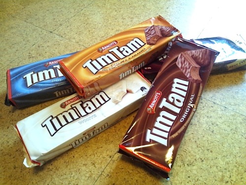 娘がメルボルンにいた頃、大のお気に入りだったお菓子「ティムタム」。最初に日本のスーパーで見つけた時は、2種類くらいだったんですが、今ではこんなに出てるんですね!前に食べた印象は、とにかく味が濃い。濃厚とか深いコクとかいう複雑な感じではなく、濃い味、なおかつクセになる味でした。さてこの5種類、何から食べましょうか。久しぶりです。が、やはり食べたことのないものから、ホワイトとチューイカラメルを煎茶とともにいただきました。ホワイトは甘くてなんとなく懐かしい味。カラメルはサンドされているのがカラメルクリームというよりもくちゃっとししていてキャラメルそのものって感じです。煎茶のチョイスは正解でした。渋みと苦みが甘さとよく合います。ホワイトはお抹茶でも合いそうですネ。今度はどれをいただきましょう?