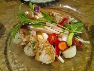 西宮北口駅から西宮ガーデンズに行こうと思ったのに出口を間違え、仕方なく地上を歩いていて偶然みつけたお店。お野菜ビストロ レギューム8階建てのビルの8階なので、眺めがいいのかと期待しましたが、隣のビルの方がはるかに高くて外はあまり見えませんでした。ビルそのものは新しいようでなんとなく消毒薬の臭いがすると思ったら、クリニックばかりが集まったフロアがあるようです。でも日曜日はお休みなのでしょう、異常に静かでした。が、ビル全体の静けさとは裏腹にお店は大層にぎわっていました。満席というわけではありませんでしたが、予約の有無をまず確認され、門前払いかと一瞬不安になりましたがとりあえず入れました。ほっ。有機野菜とビオワインのお店のようです。アラカルトで頼みました。ヤリイカと有機野菜。貝柱と白身魚と有機野菜。甘酸っぱいソースが美味。有機野菜の白ワイン蒸し。まさに野菜の旨味が凝縮されている感じです。牛ほほ肉の赤ワイン煮。お肉がふんわり。有機野菜のスティックサラダ。ソースは茄子。チンゲンサイも生で食べられるんですね。根菜類は生っぽいんですが、えぐみや渋みは全然なくて、甘いんです。サッと火を通してるんでしょうか?野菜の種類はどれも一緒で日の菜、ミニチンゲンサイ、紫人参、プチトマト、かぶ、ブロッコリー、茎ブロッコリー、水菜、ミニ大根、ラディッシュ、チコリ…。どれもみずみずしくて甘かったです。最近、野菜をうたったお店が増えていますね。一過性のブームで終わらないことを願います。レギューム (フレンチ / 西宮北口駅、阪神国道駅、西宮駅(JR))夜総合点★★★☆☆ 3.0