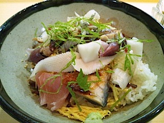 ある日のお昼です。仕事場近くのお寿司屋さん。扉が締まっていて中は見えないのですが、ランチの時間は案内が外に出ています。海鮮丼 800円 限定10食店内は広めのカウンターが6席くらいとテーブルがひとつ。カウンターの中はこれまたゆったりとしていて、壷や飾り皿や綺麗なお椀が"飾って"あり、客席から見ると床の間みたいな感じです。お品書きもありません。ご飯は酢飯でなんとほっかほかです。私は生のえびが食べられないのでそう伝えるとホタルイカにしてくれました。一見無造作に具材が乗っているかのようですが、ひとつひとつが凝っていて嬉しくなります。ちなみにこちらが甘えびバージョン。お吸い物は香ばしい香がしました。お店はおひとりでされているそうで、決して愛想が良いとは言えませんが、とっても静かで落ち着いたついた雰囲気のお店です。ちょっとリッチな気分になれたランチでした。でも夜はちょっと勇気がいりますネ…。鮨 徳久利 (寿司 / 谷町九丁目駅、大阪上本町駅、谷町六丁目駅)昼総合点★★★☆☆ 3.0