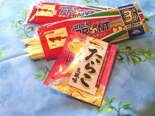 クックパッドのモニター企画で3分で茹であがるパスタとあえるだけのたらこソースをもらいました。これらを使ってクックパッド指定のレシピを作り、つくレポを投稿するという企画です。早速作ってみました。「レタスと玉ねぎのサラダスパゲティ」このパスタ、ほんとに3分でアルデンテです。便利です。ただし、水にはさらさない!と書いてあります。なので、このメニューの場合、生野菜とあわさってぬるい…。ぬるいサラダパスタです。ソースは薄味。こうして食べるとたらこの香りはほとんどしません。う〜〜〜ん。普通にたらこパスタとサラダで食べる方が正解なんじゃないかなぁ。