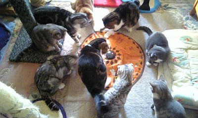 当店、よいお客様ばかりで本当に気持のいいお客様とのメールのやり取りで楽しいことの方が多いのですが、このところ代引きでのいたづら注文がありました。今日は警察に行ったり、内容証明を送ったり、普段しない業務が増えそうで、ちょっとブルーになっていたんですが、お客様から素敵なお写真をいただきました。先日お買い上げいただいた予測不可能に動き回るスティックに猫ちゃん大興奮!ライトハウス チューゲット オレンジ" 運動不足解消に! 猫夢中 おもちゃなのですが、ネコちゃんたちに大好評なのだそうです!写真で見る限り9頭の猫ちゃんがいるのかしら?みんな、夢中で見ていてかわいいです♪朝からとっても幸せな気分になった金子なのでした。Oさま、ご迷惑をおかけしたにもかかわらず、素敵なお言葉のメールをありがとうございました。素敵な一日をお過ごしくださいね!