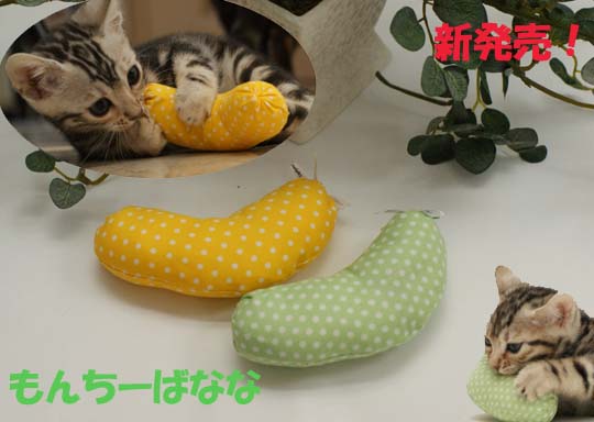 ご無沙汰しております。お元気ですか?私はもう、本当にモーレツに仕事が忙しくなってしまい、毎日バタバタしております。おかげさまで写真集も着々と編集作業が進んでいるようです。今週、編集者会議があるので、もっと具体的に本に近づいていくと思うと楽しみです。今日はお雛様ですね~!我が家は今夜は手巻き寿司です。みなさんはお雛様飾ってますか?私はすっかり忘れてました。主人いわく、「娘が嫁に行かなくてもいいから飾らないでもいい」ということらしいです。今日は耳の日でもあるそうですね。さて、先日、新商品が発売されました! 仔猫用のもんちーばななです♪けりけりばななのイエローと グリーンも 再入荷しています♪数が少ないのでお早めにどうぞ♪