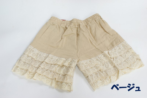 メーカーですぐに完売してしまったミラクルヒット商品のペチパンが入荷しました!これからの季節、Tシャツに合わせてもかわいいよね大人気!ちらみせもかわいい裾レースのコットンパンツ ★ミラクルヒット商品!★裾レースコットンパンツ かわいいペチコートパンツ ショートパンツ ブラック・グレー・ベージュ 【メール便可】