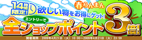 緊急企画!! 2009/4/8(水)0:00~2009/4/8(水)23:59 ポイント 10倍!!お買い得品を探すのだ!!!